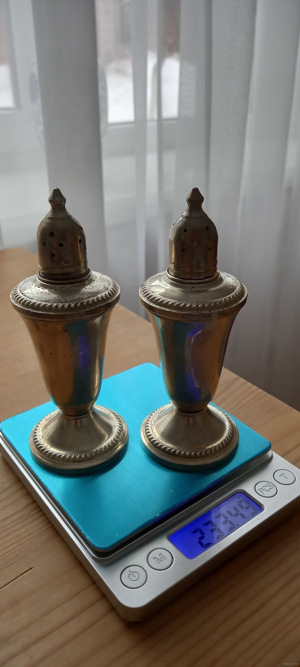 Серебряный набор (солонка и перечница) 925пр. Sterling. 233гр. С рубля. Высота 12,5см.