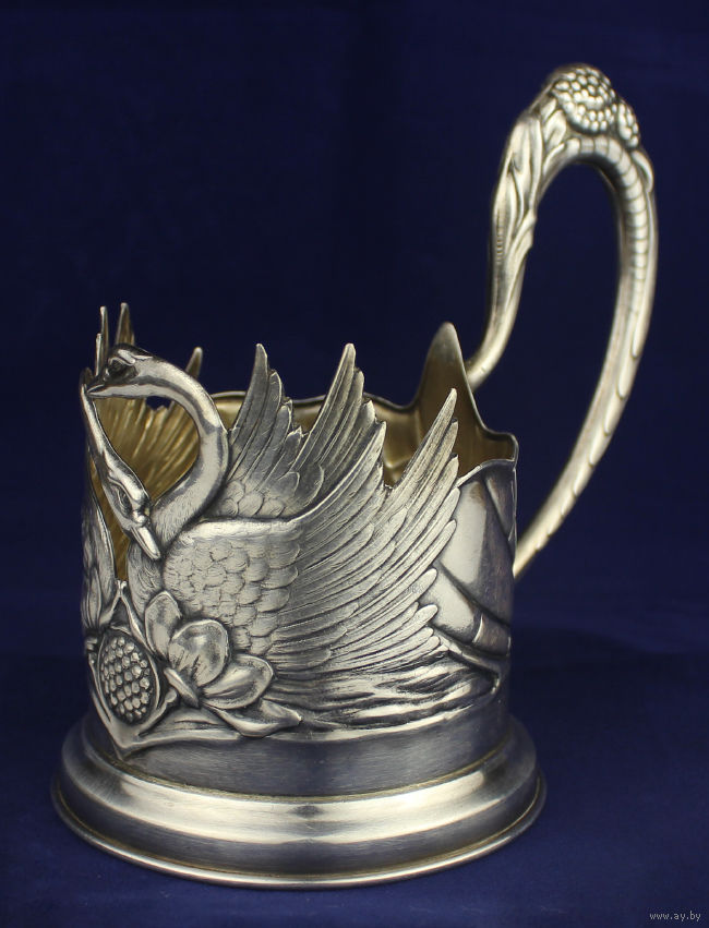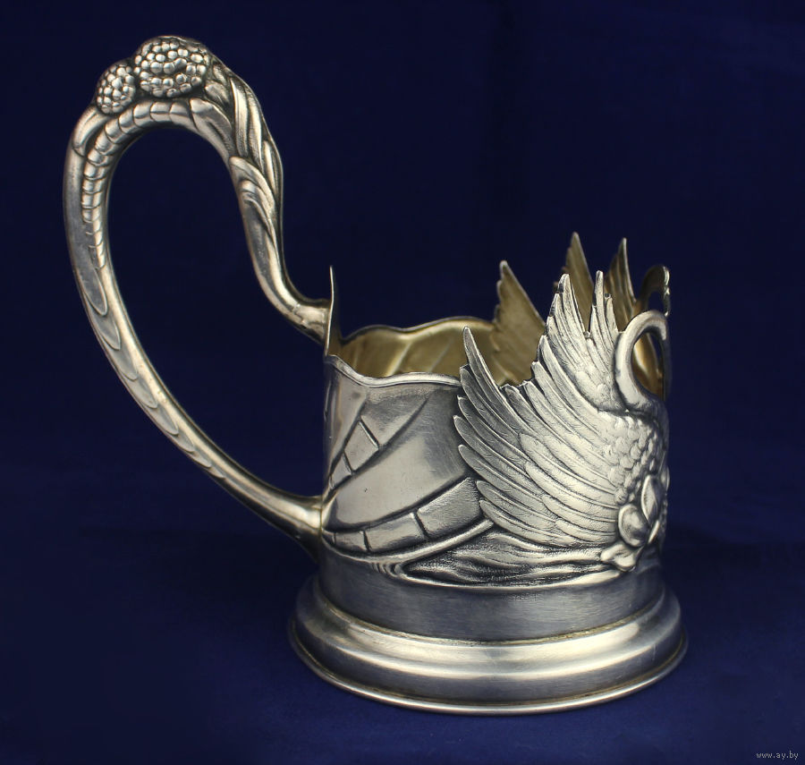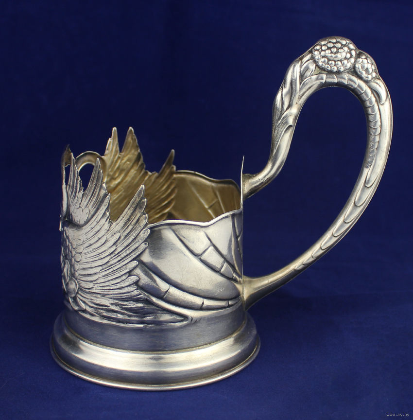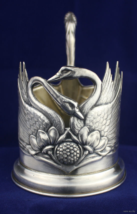 СЕРЕБРЯНЫЙ ПОДСТАКАННИК ПАРА ЛЕБЕДЕЙ