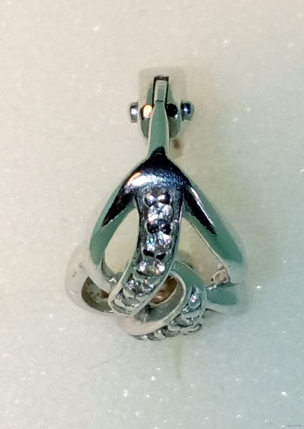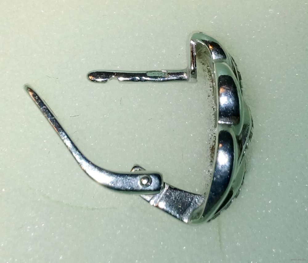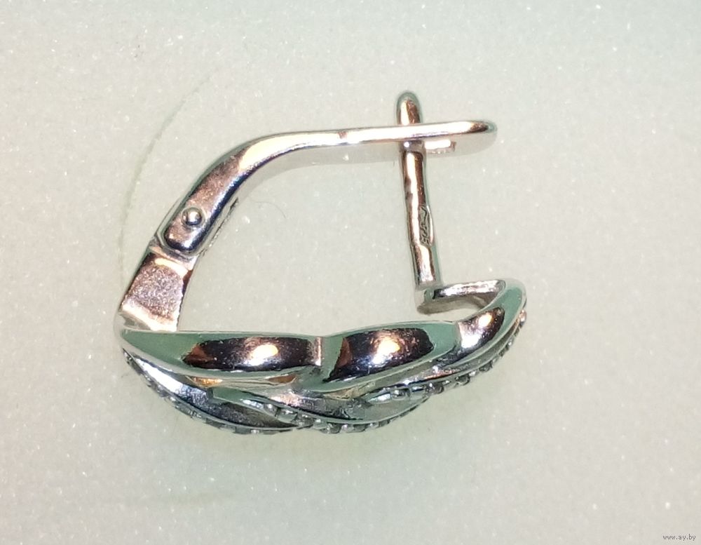 Серебреная серьга-одиночка с фианитами. Пробирное клеймо 925 пр. Вес - 1,43 г. Родиевое покрытие. Замок исправен. Состояние - "как новое".