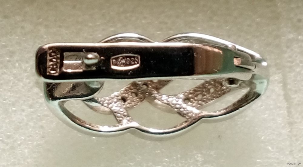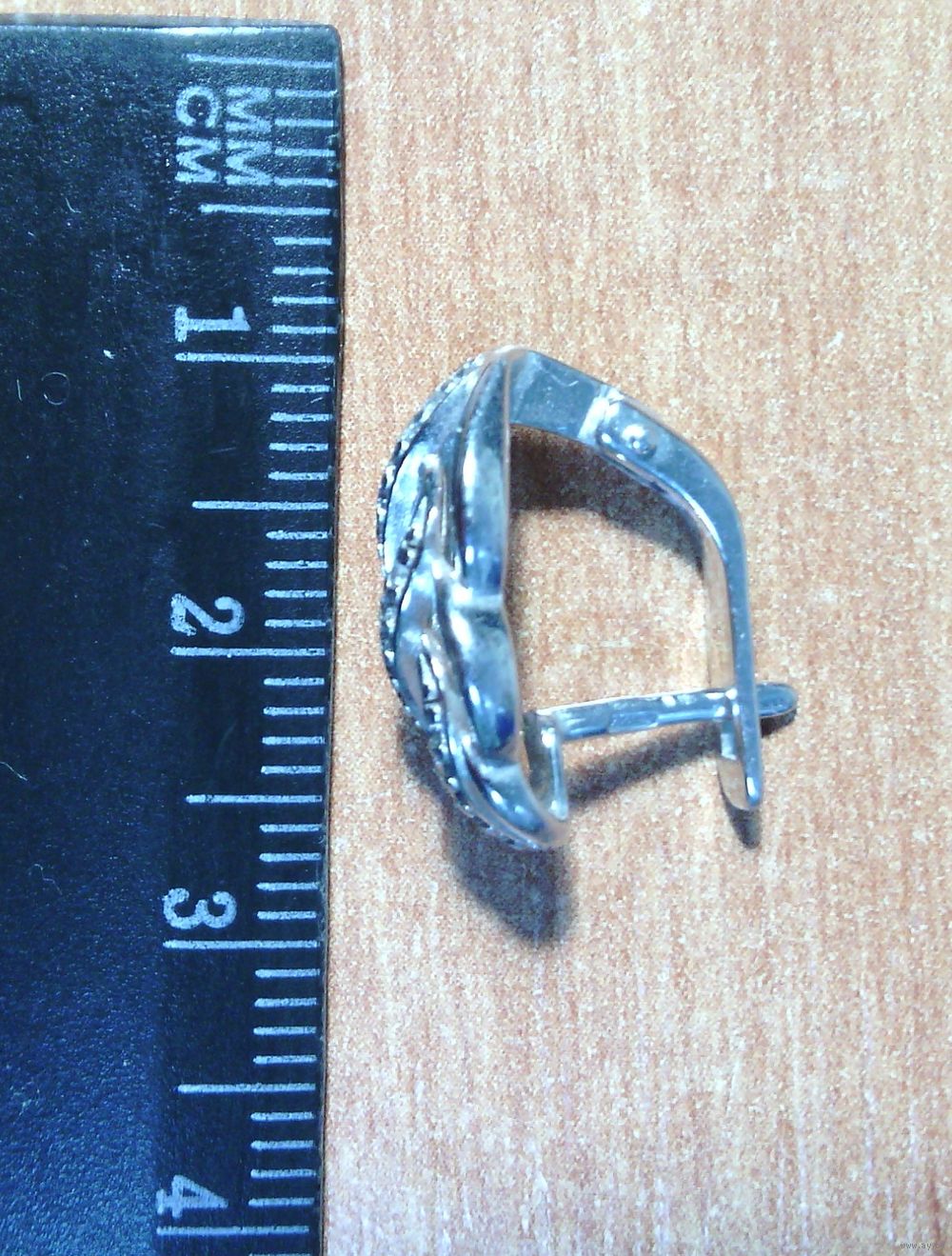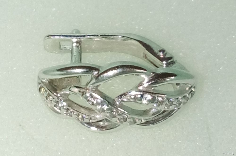 Серебреная серьга-одиночка с фианитами. Пробирное клеймо 925 пр. Вес - 1,43 г. Родиевое покрытие. Замок исправен. Состояние - "как новое".