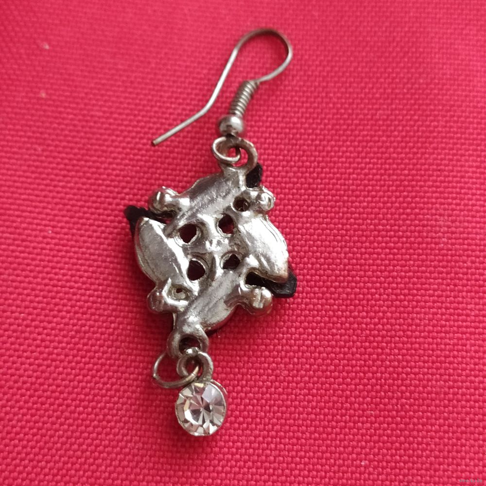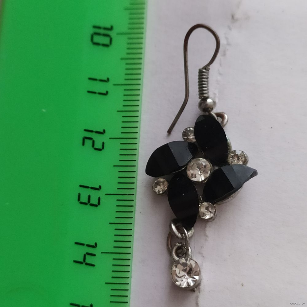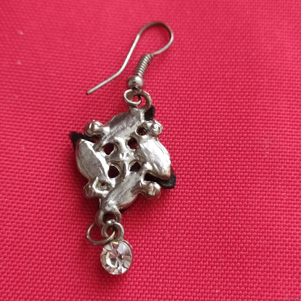 Серьга (одна) -висюлька с камушками, длина 4,5см., оригинальная, 20век., до пары, в коллекцию. см.фото, спасибо. Распродажа остатков...