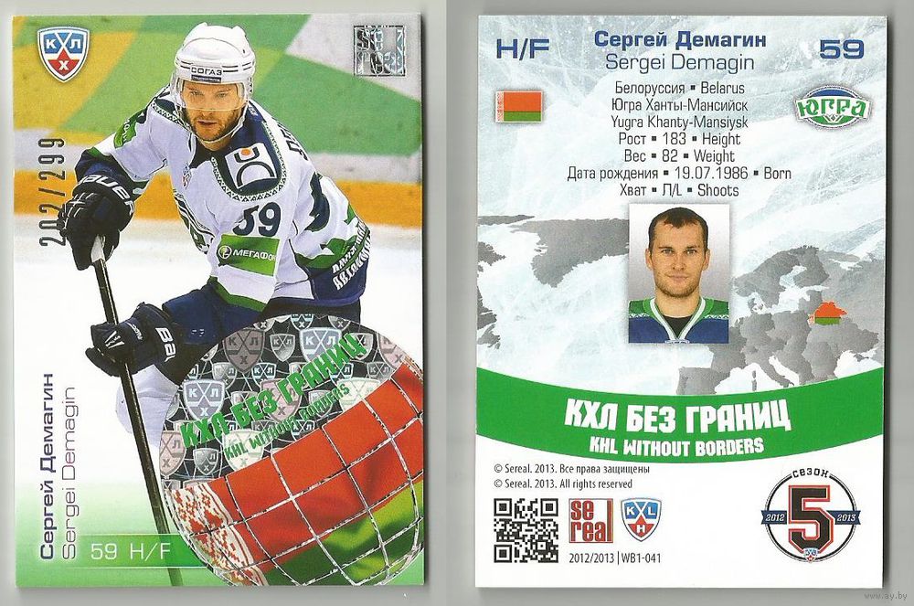 Сергей Демагин ("Югра" Ханты-Мансийск)/ КХЛ без границ/ #WB1-041 из коллекции SeReal Карточки КХЛ 2012-2013. Золотая коллекция. Тираж 202/299.