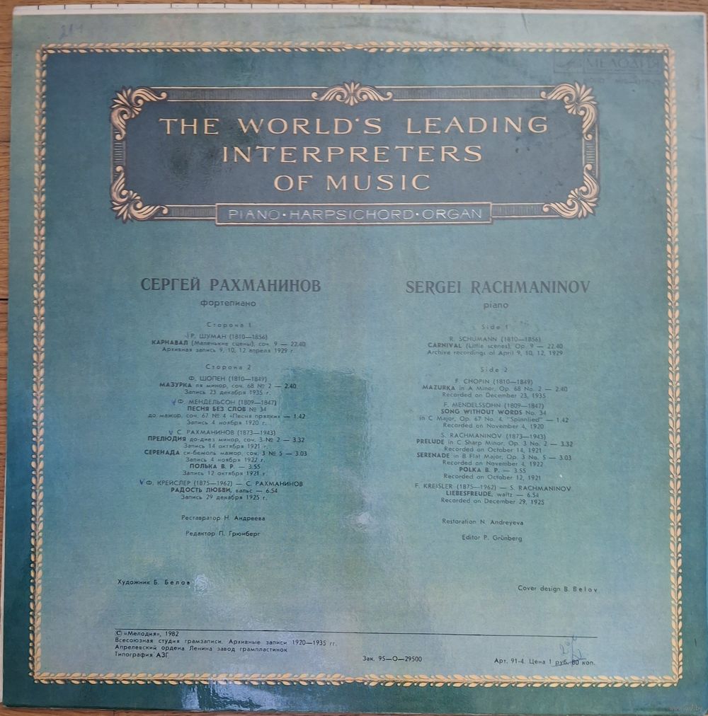 | Исполнитель | Сергей Рахманинов |