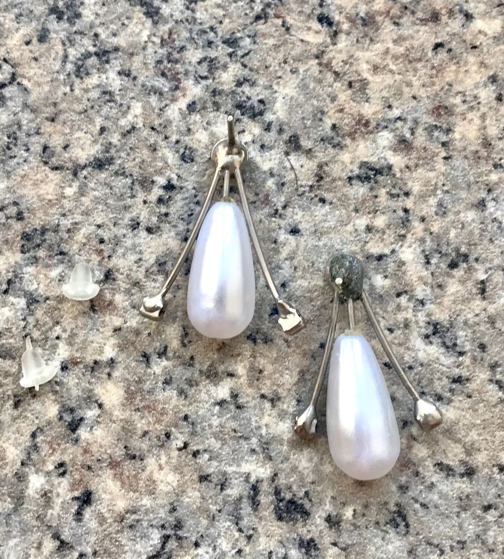 2. Винтажная бижутерия, подвеска из стекла, имитирующая жемчужину. Высота серьги 2,5см., диаметр подвески~1,3см.