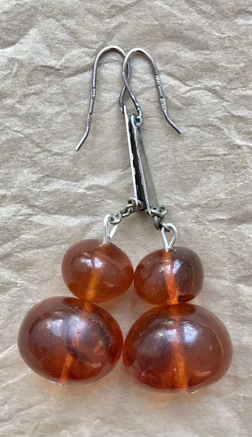 Крупные серьги из серебра и янтаря. Апсайклинг. Крючки и декоративные элементы сделаны на Калининградском янтарном комбинате в 1968г. (стоит клеймо 875 и именник ЯК8). Подвески-крупные шарики из янтаря. Высота серьги 6,5см. На одной серьге с обратной стороны видны следы ремонта (этот момент учтён в цене).
