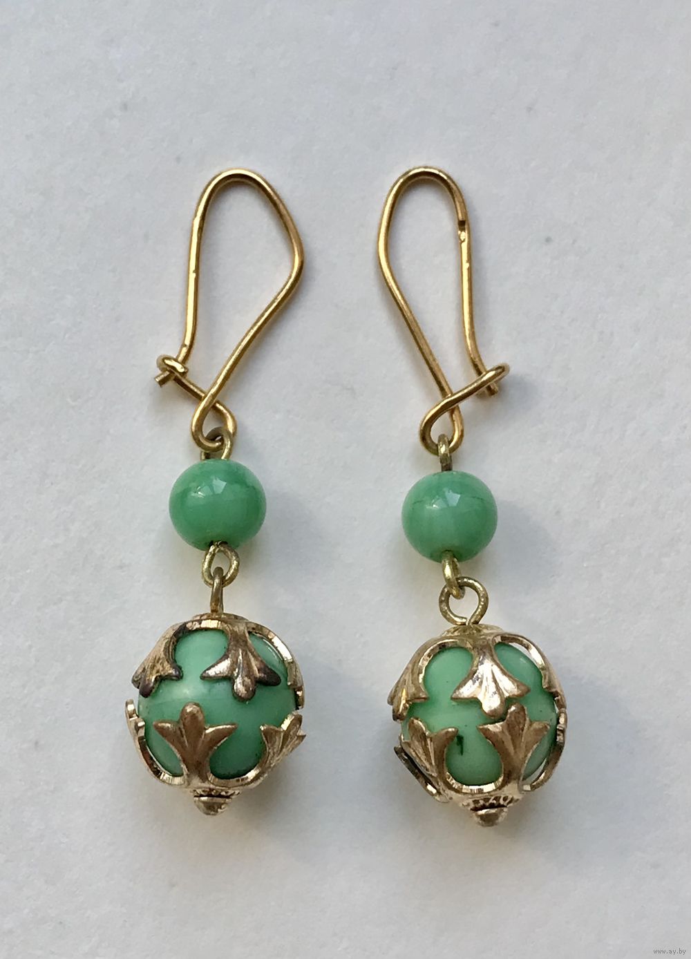 Винтажные серьги из латуни и худ.стекла. Высота серьги 4,3см. На металле местами имеется сход позолоты (учтено в цене).