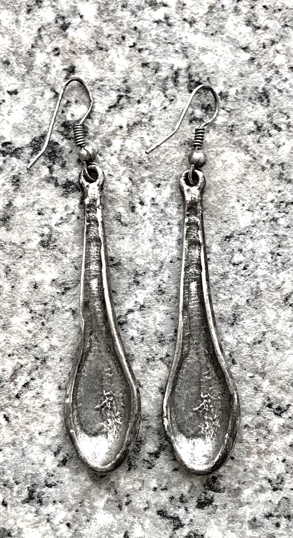 Крупные серьги из металла серебристого тона (очень похож на пьютер).Высота со швензой 7см. Состояние хорошее.