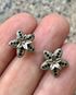 Серьги из металла с серебрением и вставок из мелких кристаллов чёрного цвета. Размер цветочка 1,2х1,2см. Состояние хорошее.