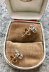 Серьги-пусеты из бижутерного сплава двух тонов со вставками из синих и прозрачных кристаллов. Размер серьги 0,9х0,6см. Состояние хорошее.