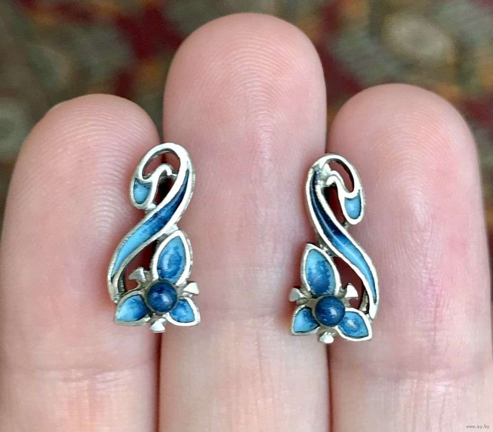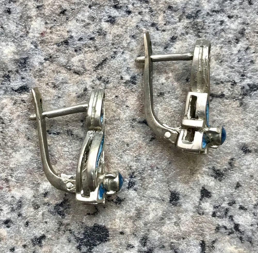 Винтажные серьги из мельхиора, на лицевой стороне эмаль, английский замок. Высота серьги 1,5см. Состояние хорошее.