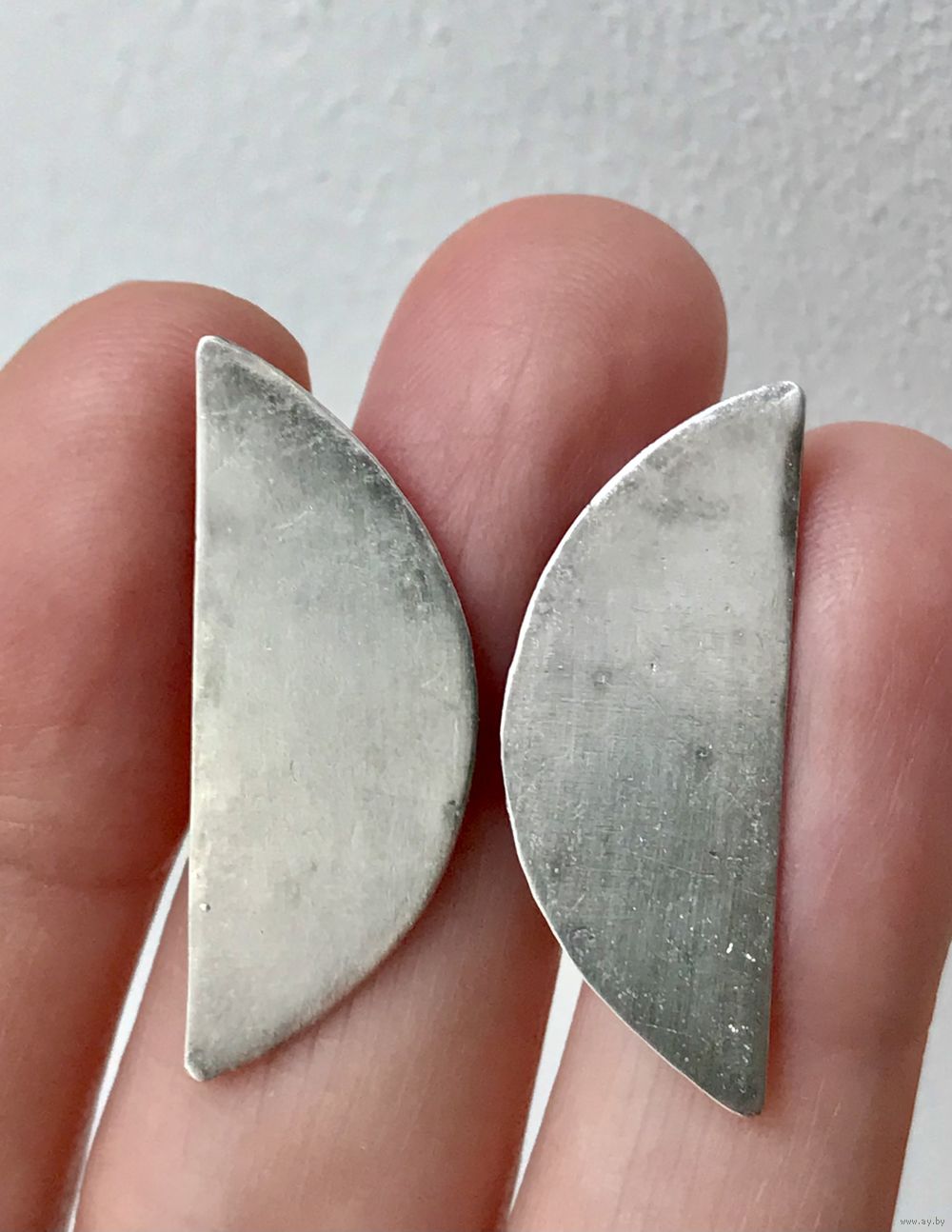 Крупные серьги из серебра (отметок нет, металл проверен в юв.мастерской). Ручная работа. Размер серьги 3,2х1,2см. Состояние хорошее.