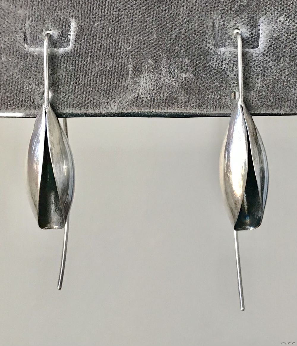 Дизайнерские серьги из латуни с глубоким серебрением. Высота 4см., размер бутона 2,5х1см. Состояние хорошее.