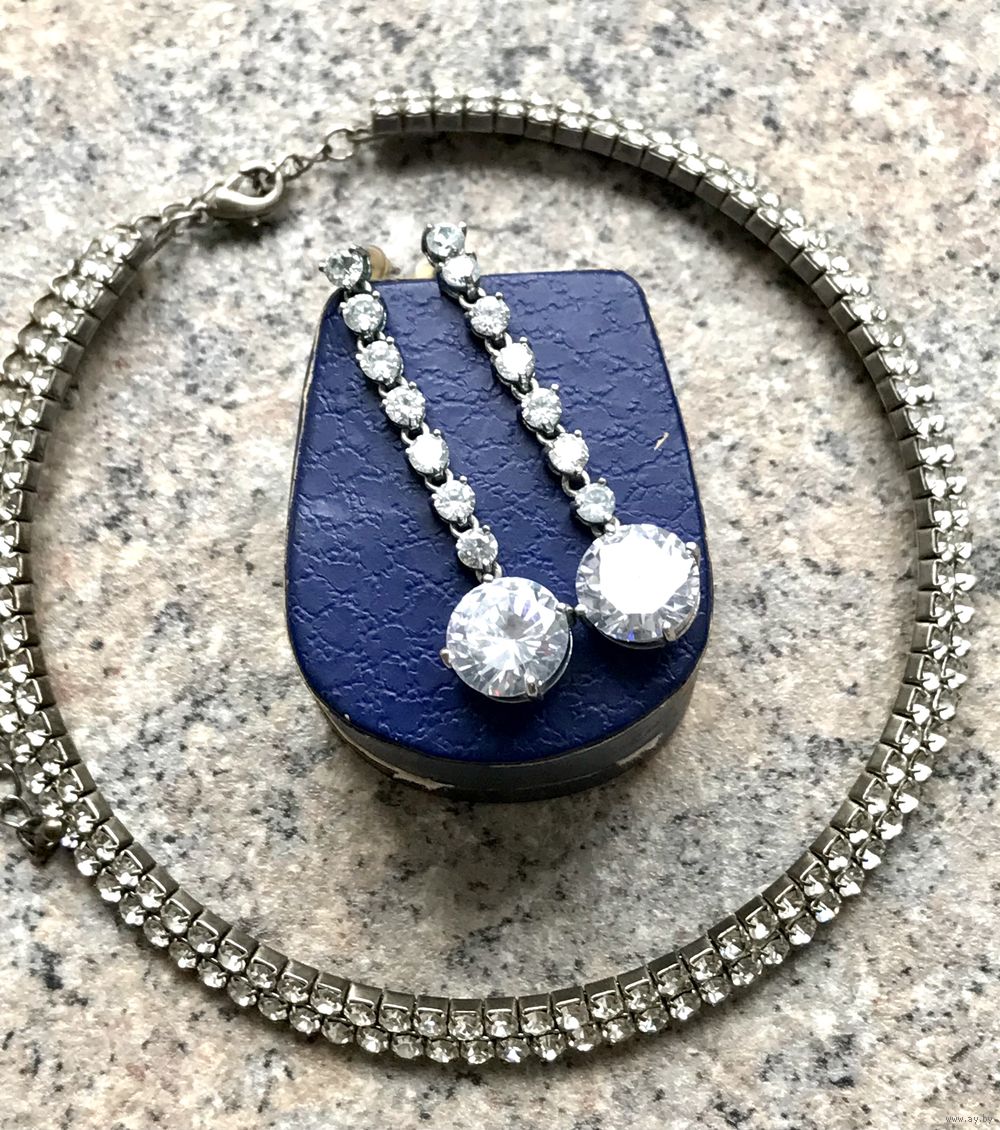 Серьги из бижутерного сплава серебристого тона, вставки -кристаллы. Высота серьги 5см., диаметр нижней подвески 1,6см. Состояние хорошее.