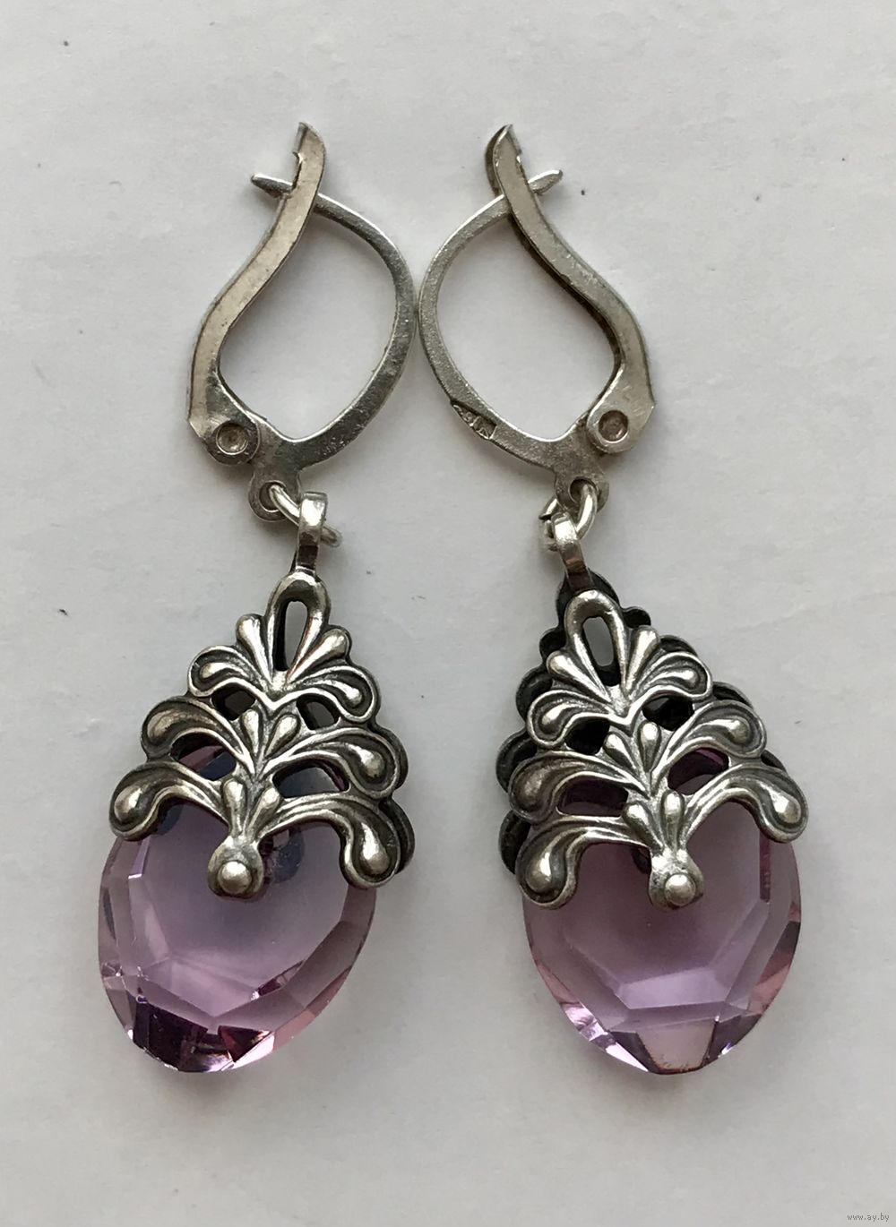 Винтажные серьги из мельхиора и вставок из юв. стекла. Приволжск. Высота серьги 4см. Состояние хорошее.