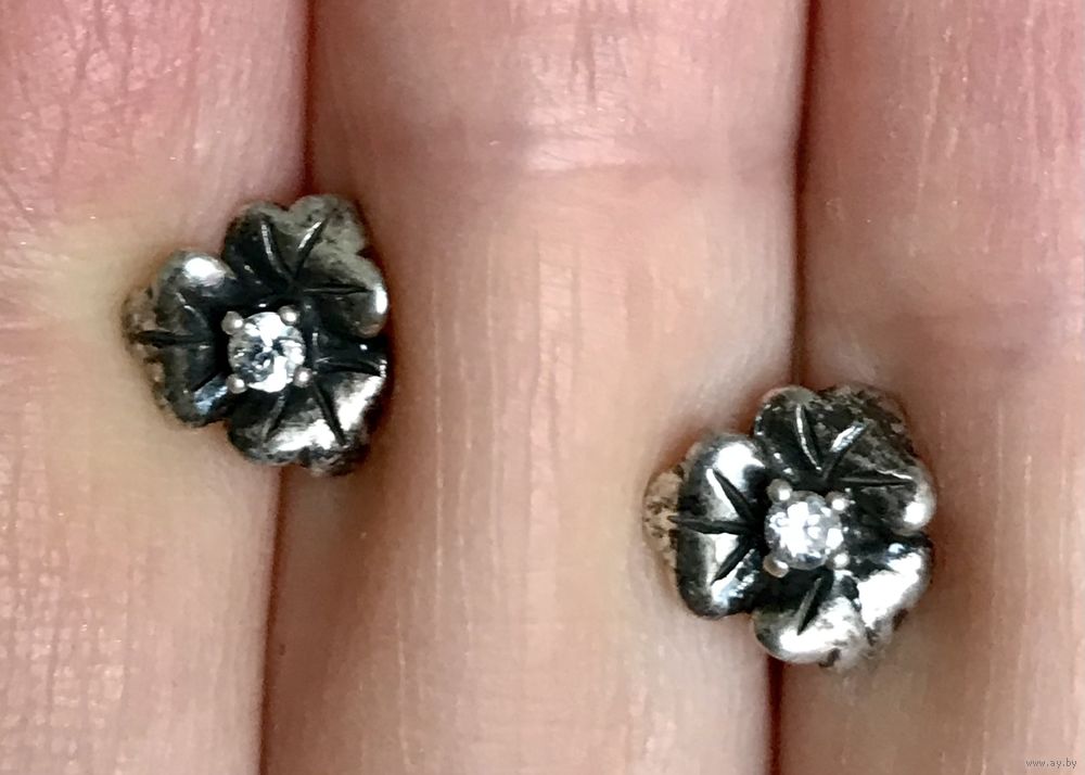 Винтажные серьги-пусеты из мельхиора со вставкой из стекла. Состояние хорошее. В лотах есть подходящее кольцо из серебра.