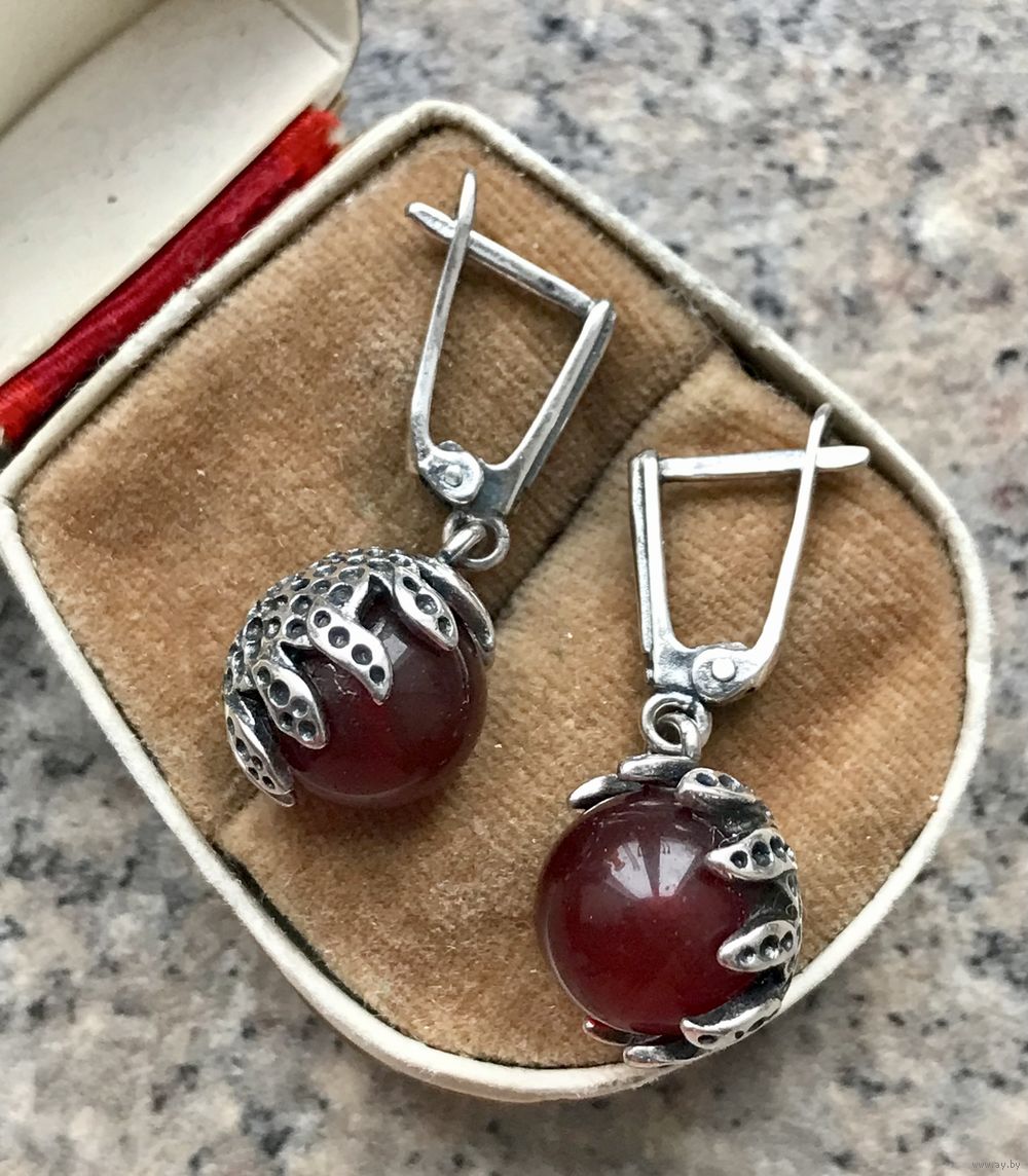 Эффектные крупные (высота 2,3 см., диаметр 2см.) серьги из металла с серебрением (стоит отметка), вставки кристаллы и кабошоны из художественного стекла диаметром 1см. Состояние хорошее.
