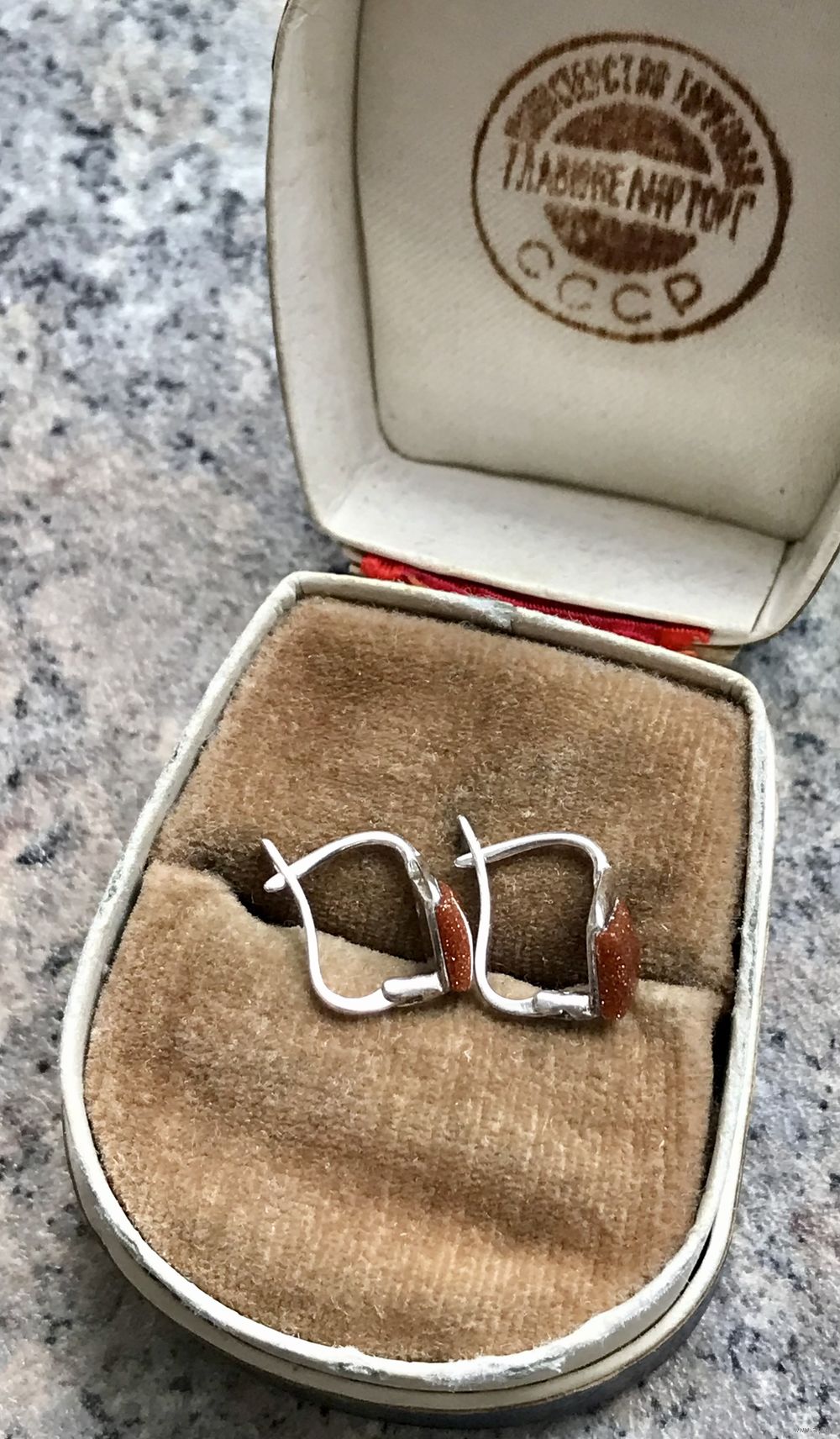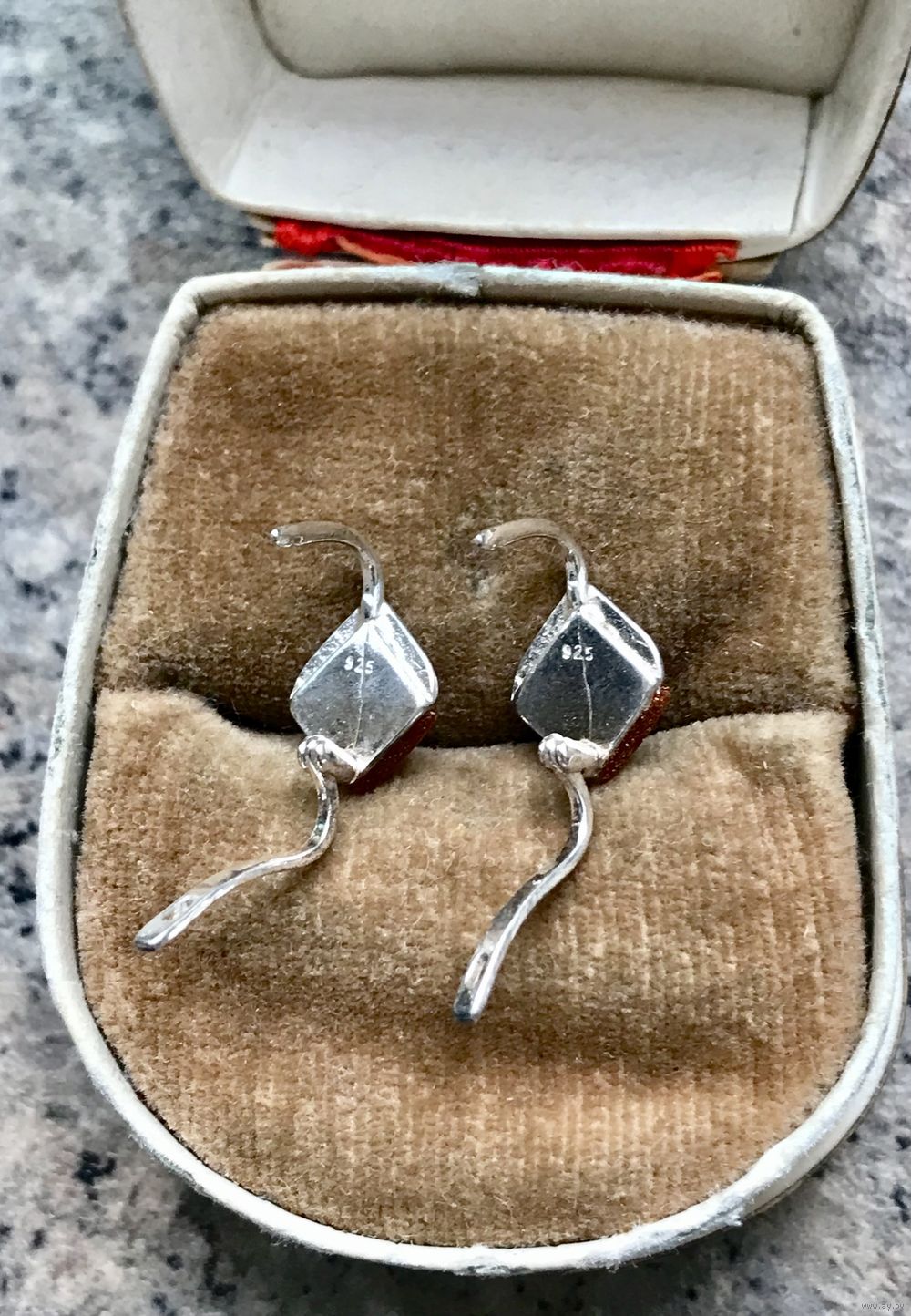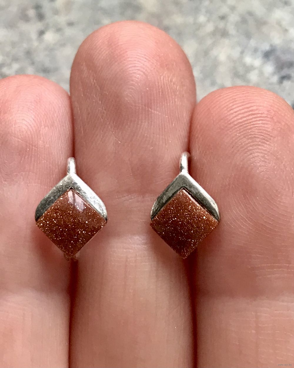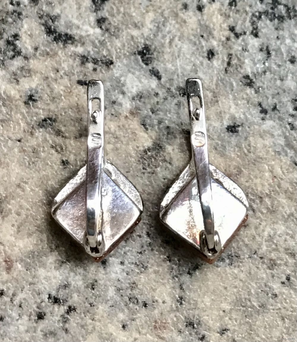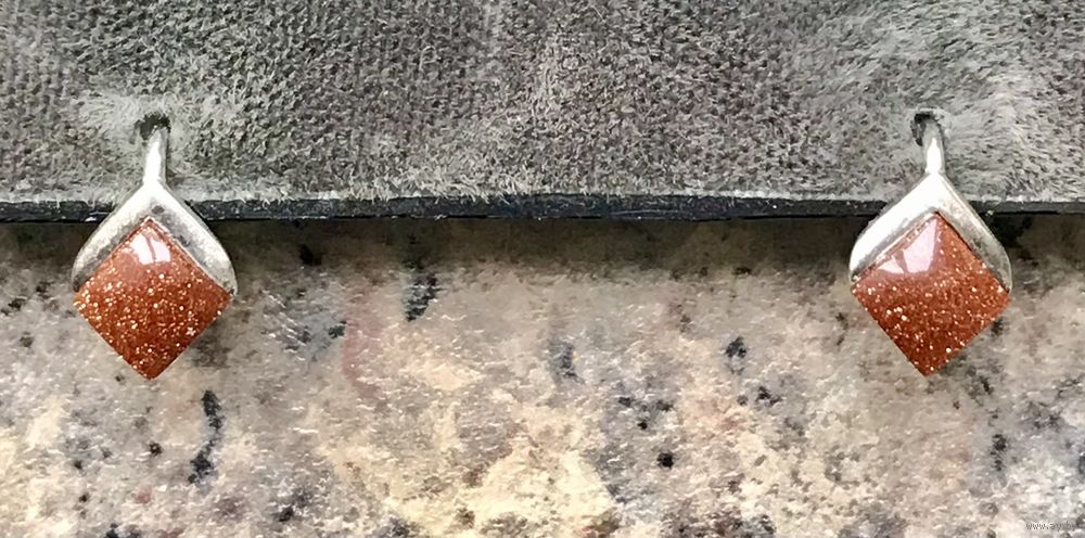 Небольшие серьги из серебра 925пр. и вставок из авантюрина. Высота серьги 1,2см. Состояние хорошее.