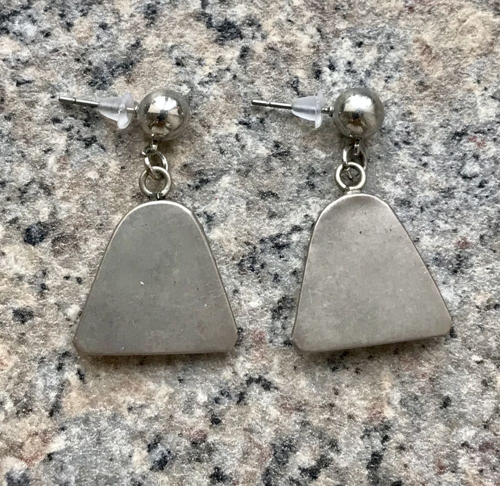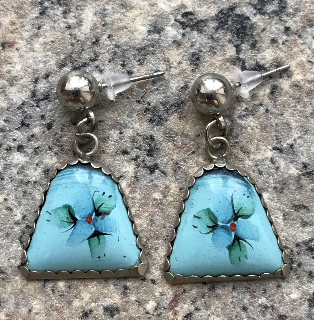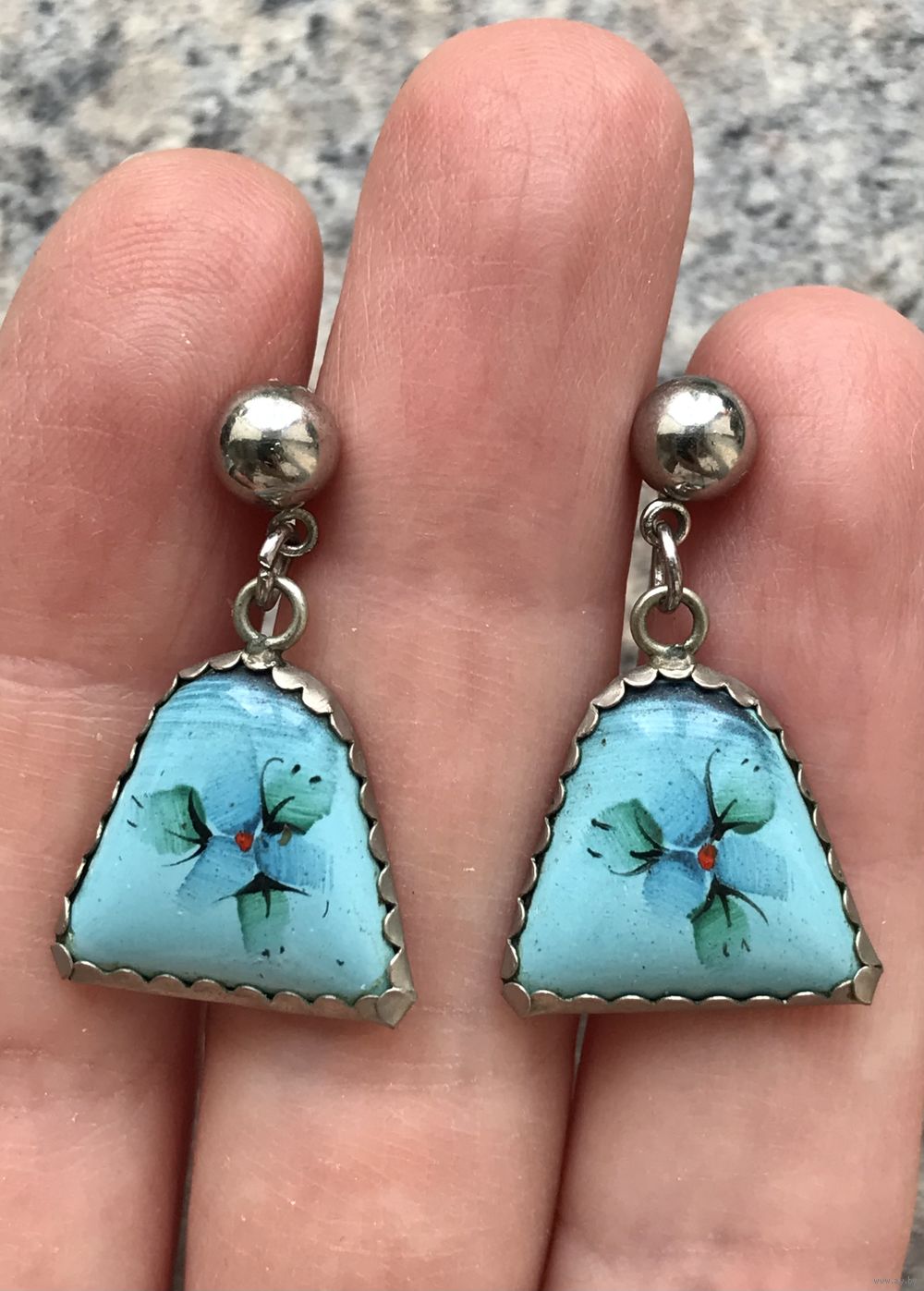 Винтажные серьги пусеты с основой из мельхиора и вставками финифти. Высота серьги 3см. Состояние хорошее.