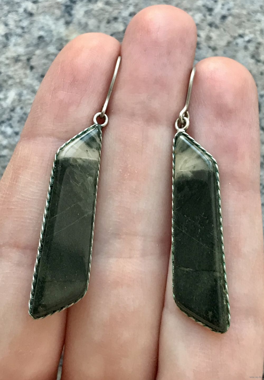 Небольшие винтажные серьги из мельхиора и вставок из нат. камня. Высота серьги 4,5см. Состояние хорошее.