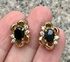 Винтажные серьги-пусеты из бижутерного сплава золотого тона, вставки из стекла чёрного цвета и кристаллов. Высота серьги 1,6см., ширина 1см. Состояние хорошее.