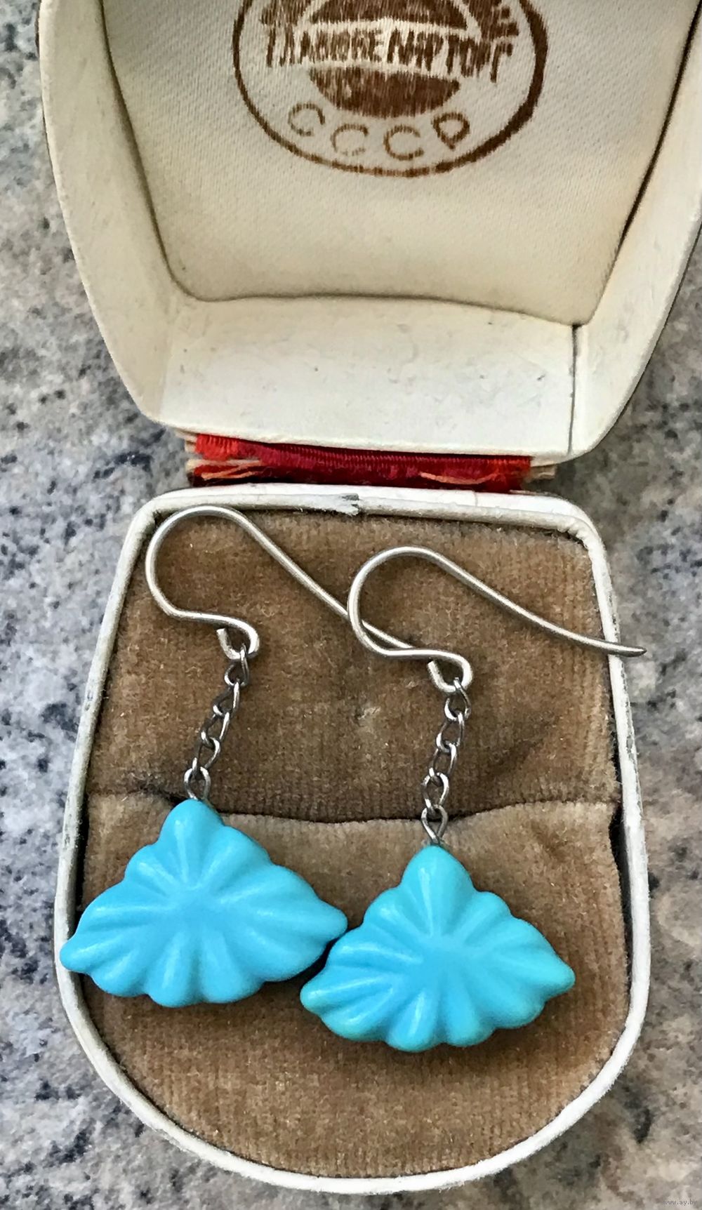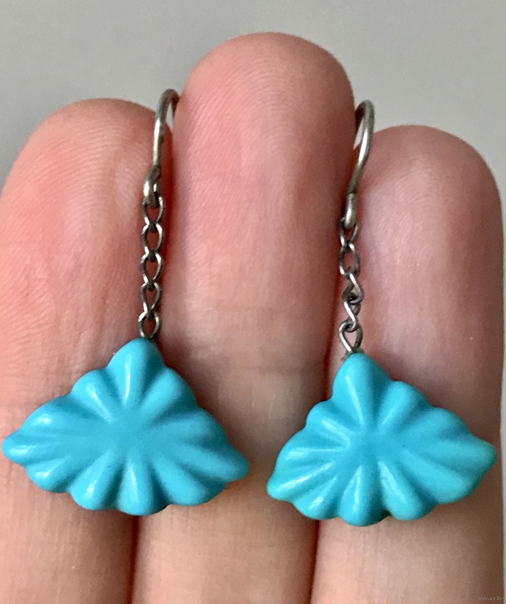 Винтажные серьги из мельхиора и подвесок из стекла. Высота серьги 3,5см., размер подвески 1,3х1,8см. Состояние хорошее.