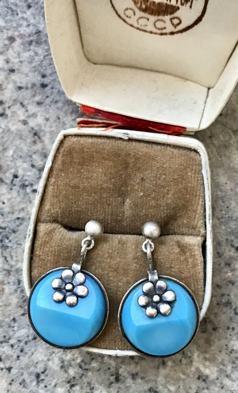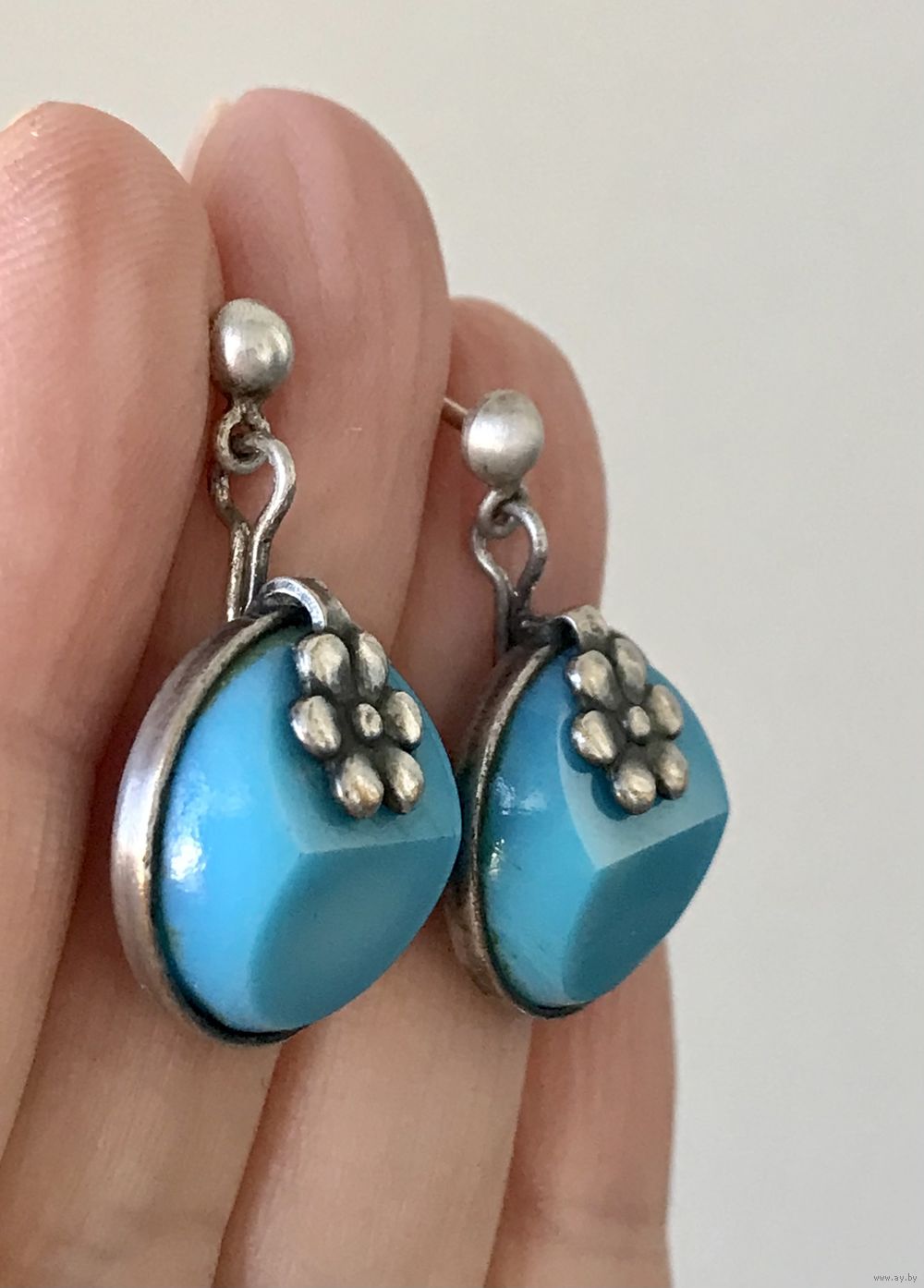 Крупные винтажные серьги-пусеты из мельхиора и вставок из стекла. Высота серьги 2,8см., диаметр вставки 1,8см. Состояние хорошее.