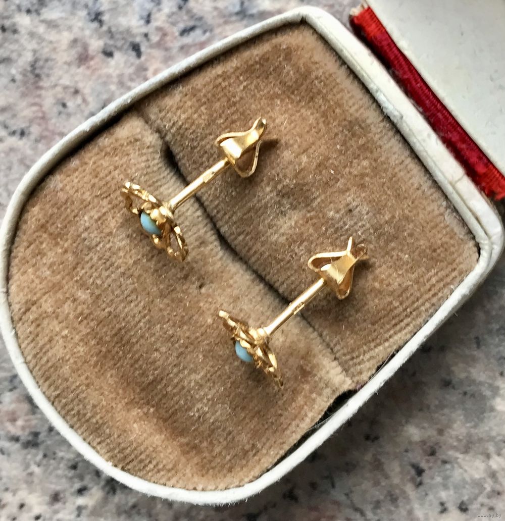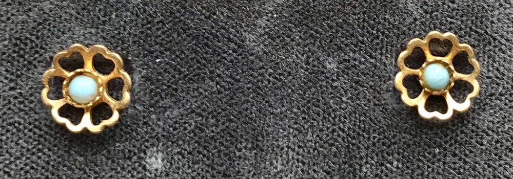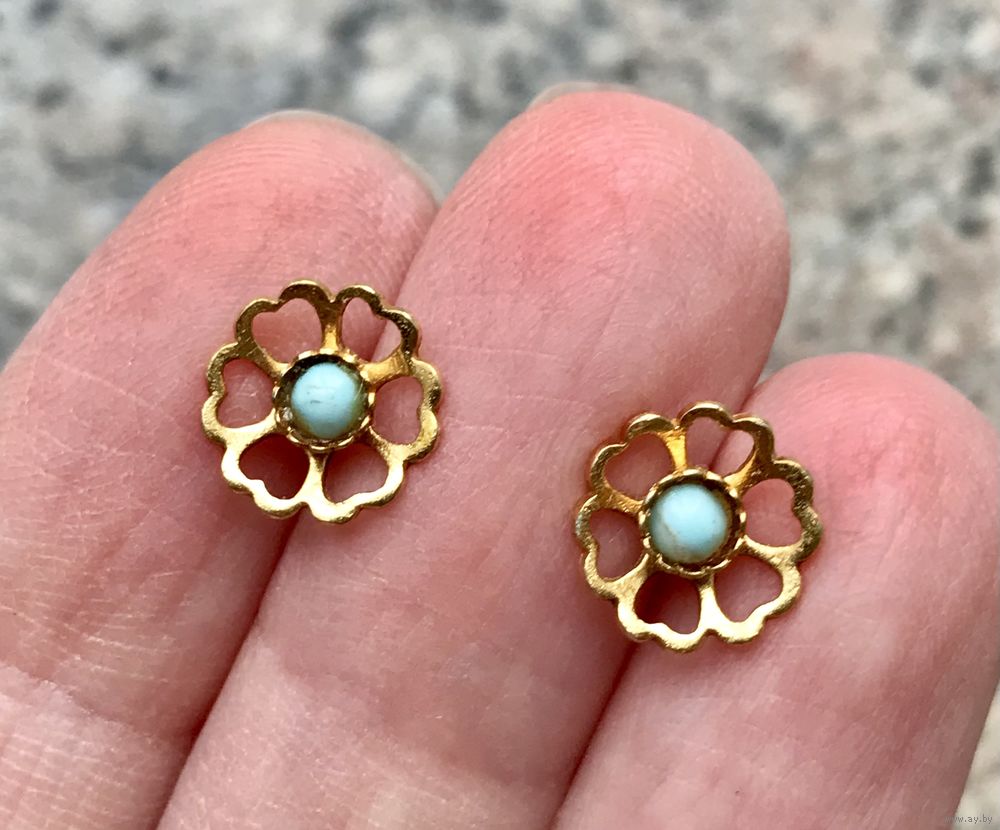 Винтажные серьги-пусеты из латуни с позолотой и вставками из смальты. Диаметр цветочка 1см. Состояние хорошее.