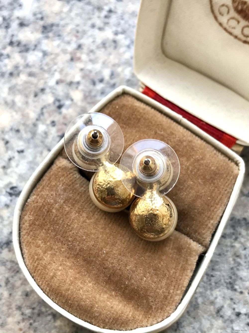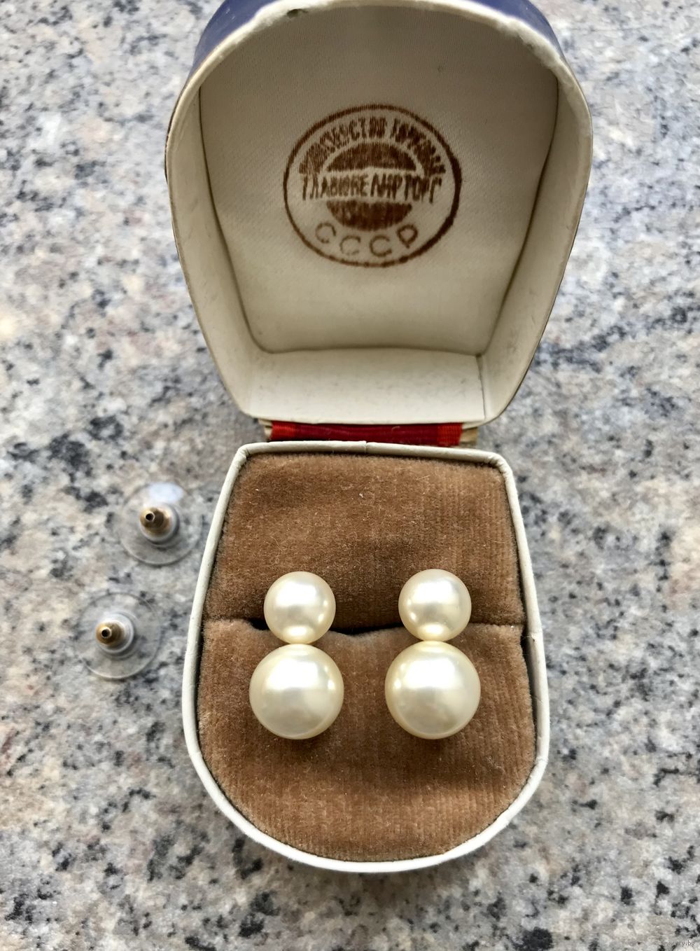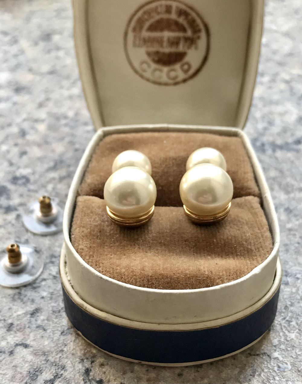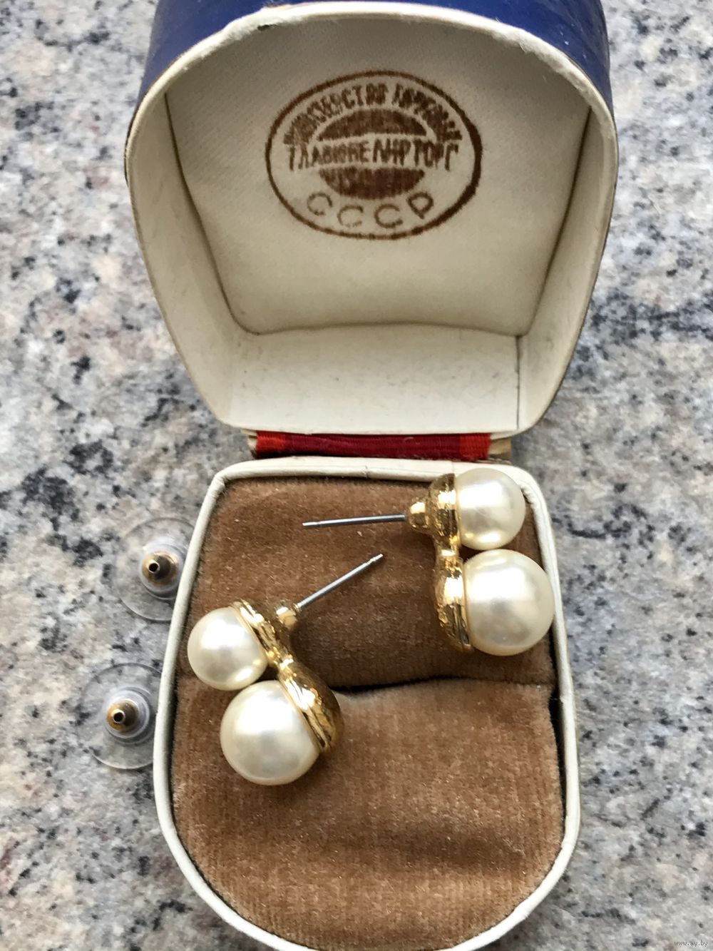 Винтажные крупные серьги-пусеты от Oriflame. Основа из бижутерного сплава золотистого цвета, имитация жемчуга. Состояние хорошее.
