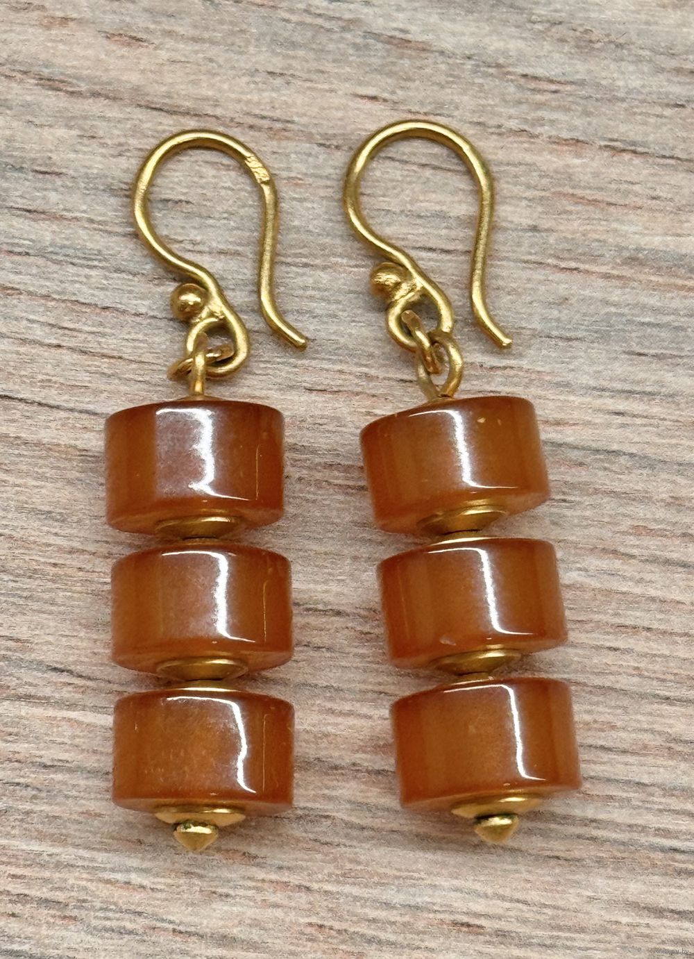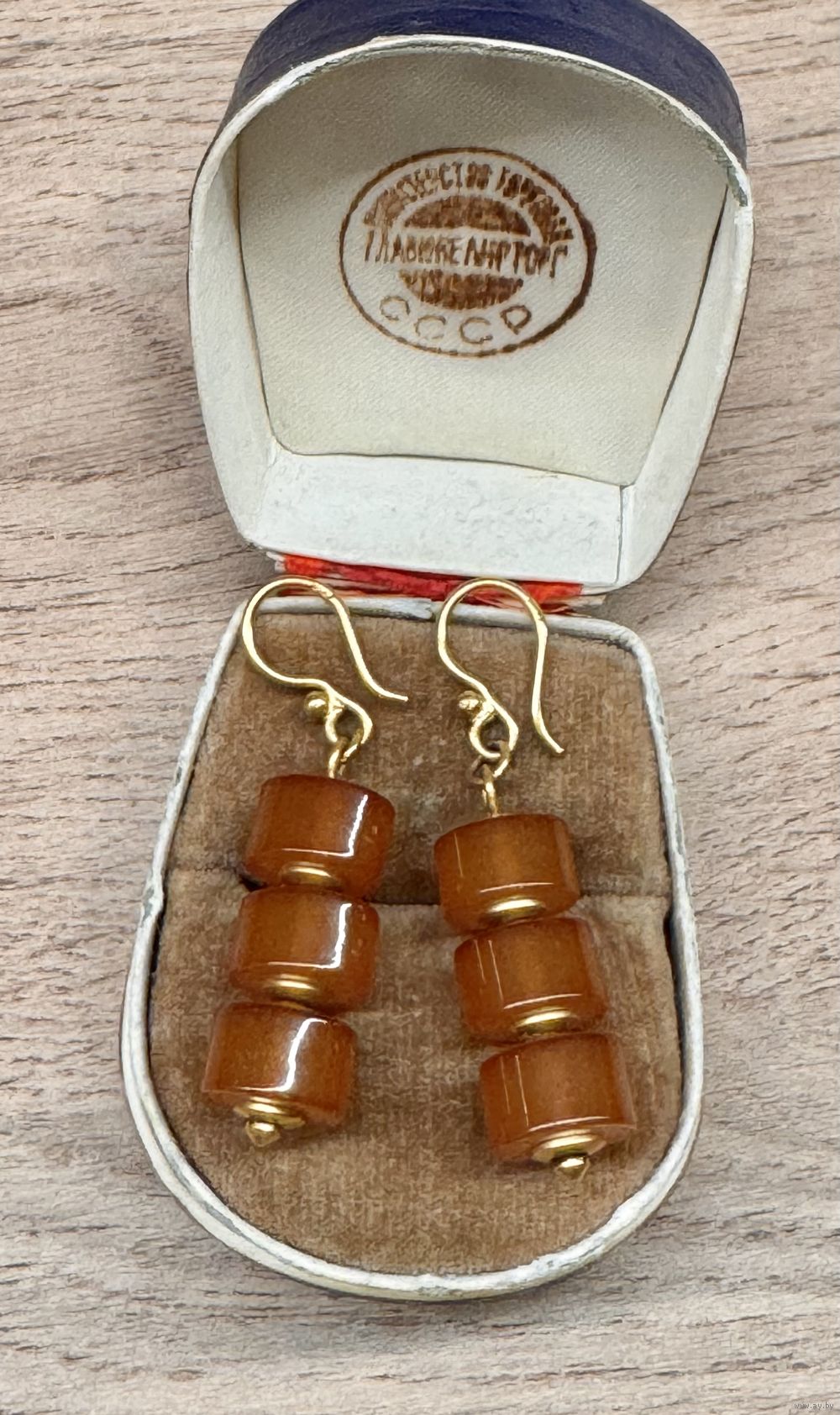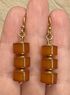 Серьги Калининградского янтарного комбината из латуни с позолотой и янтаря. Сделаны в 1990г.(на крючках стоят отметки :0РЯ). Высота серьги 4,4см. Состояние хорошее.