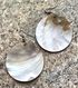 Крупные серьги с подвесками из натурального перламутра с рисунком на лицевой стороне. Высота серьги 6,5см., диаметр подвески 5см. Состояние хорошее.