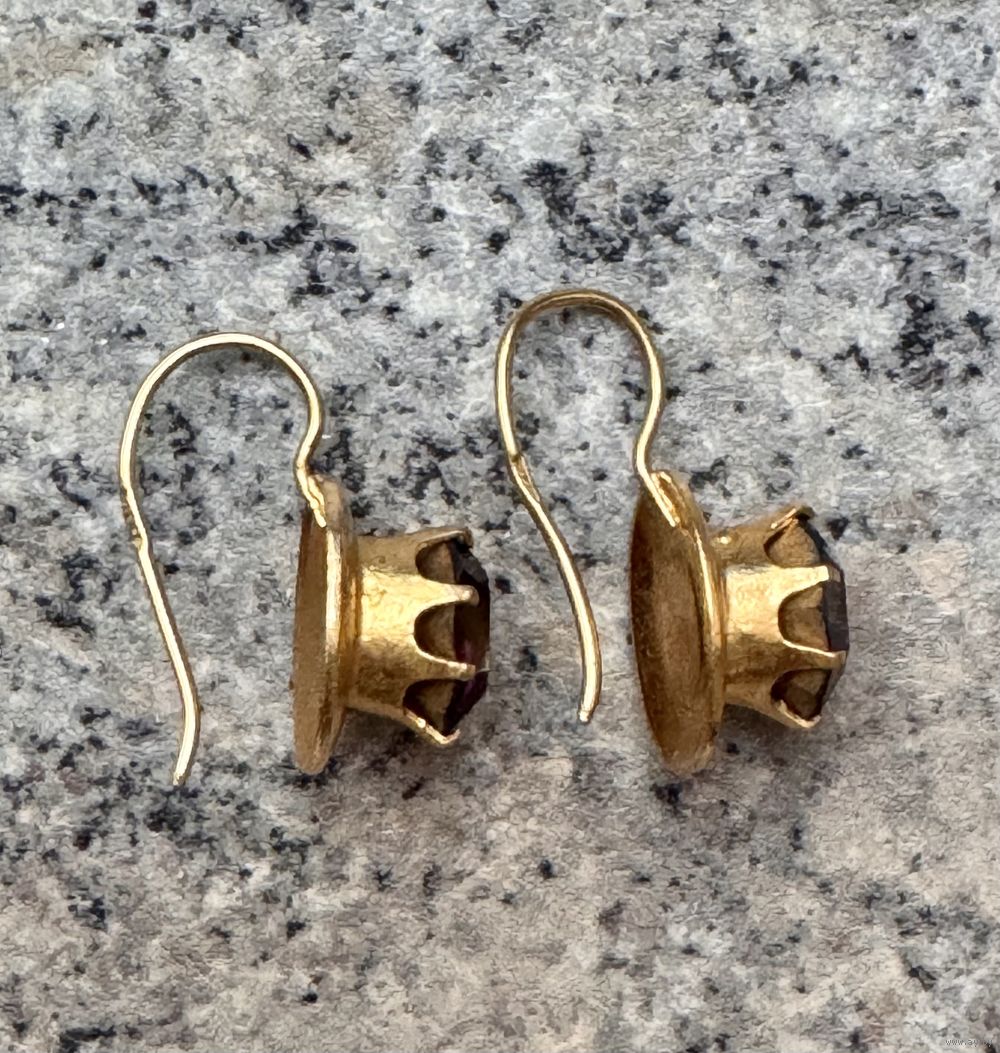 Винтажные серьги с основой из латуни с позолотой, вставки из цветного стекла. Высота серьги 2см. Состояние хорошее.