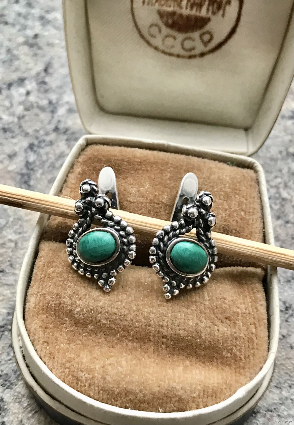 Серьги Пелагея из коллекции Славянка от бренда юв.бижутерии Женави. Основа из металла с покрытием серебром. Вставка из амазонита. Высота серьги 1,7см. Состояние хорошее.