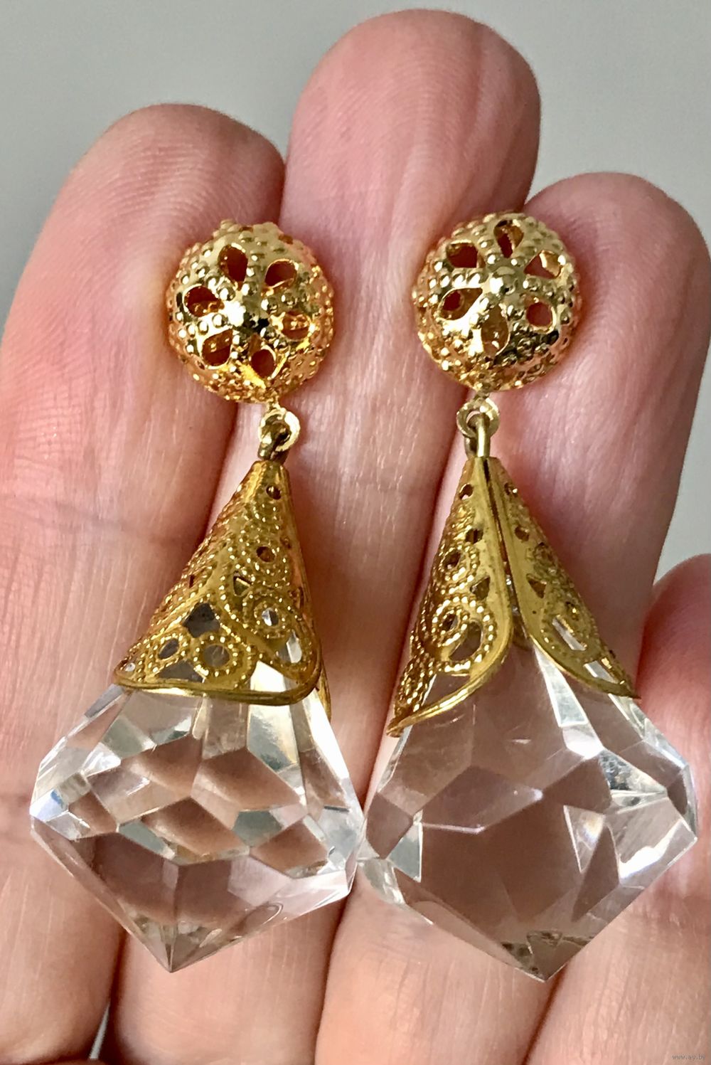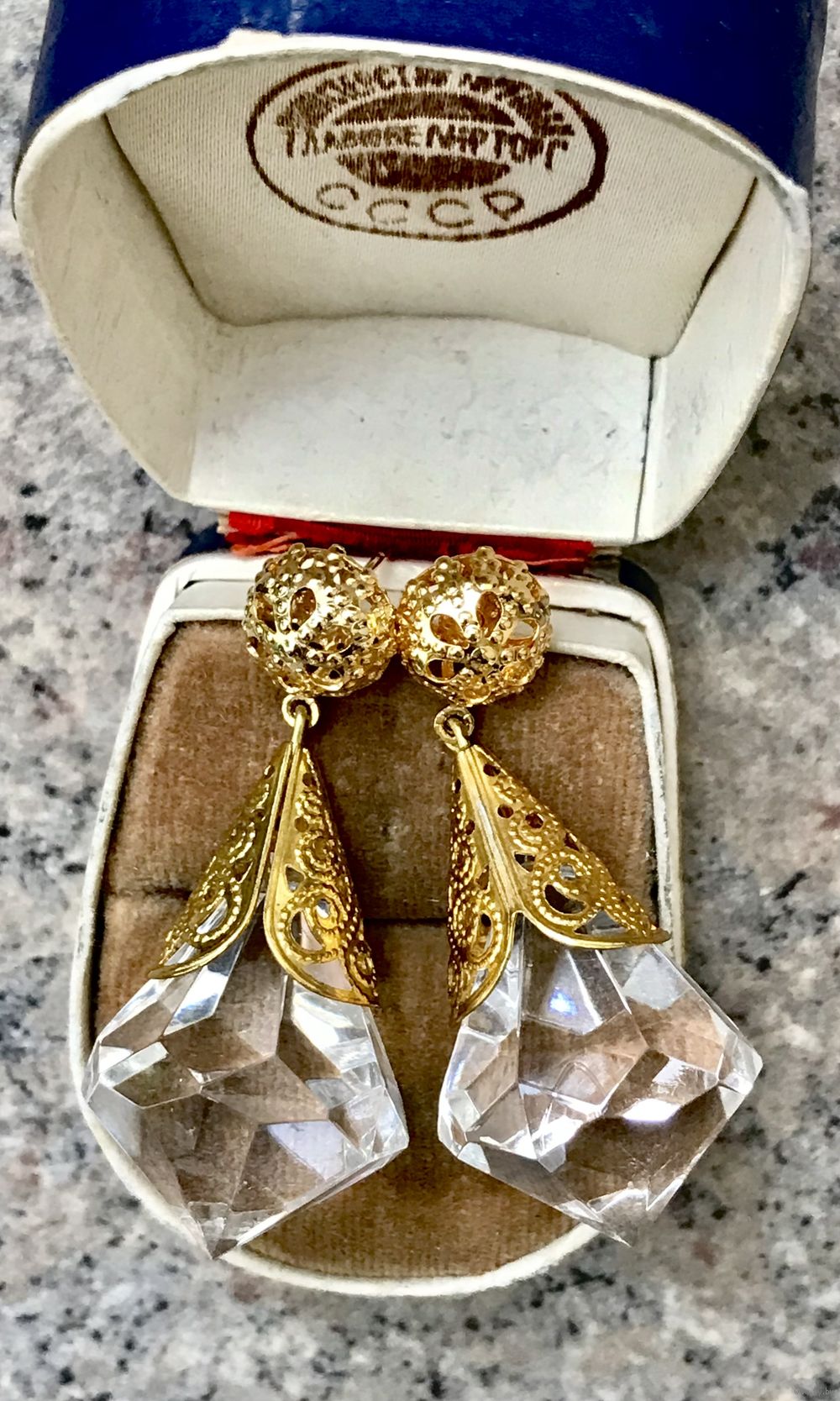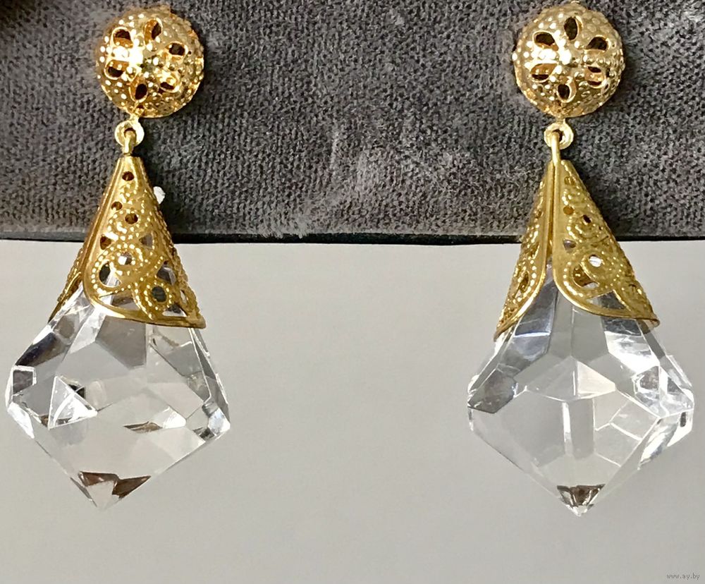 Серьги-пусеты с основой из латуни и крупной вставки из гранёного пластика. Высота серьги 4,5см. Состояние хорошее.