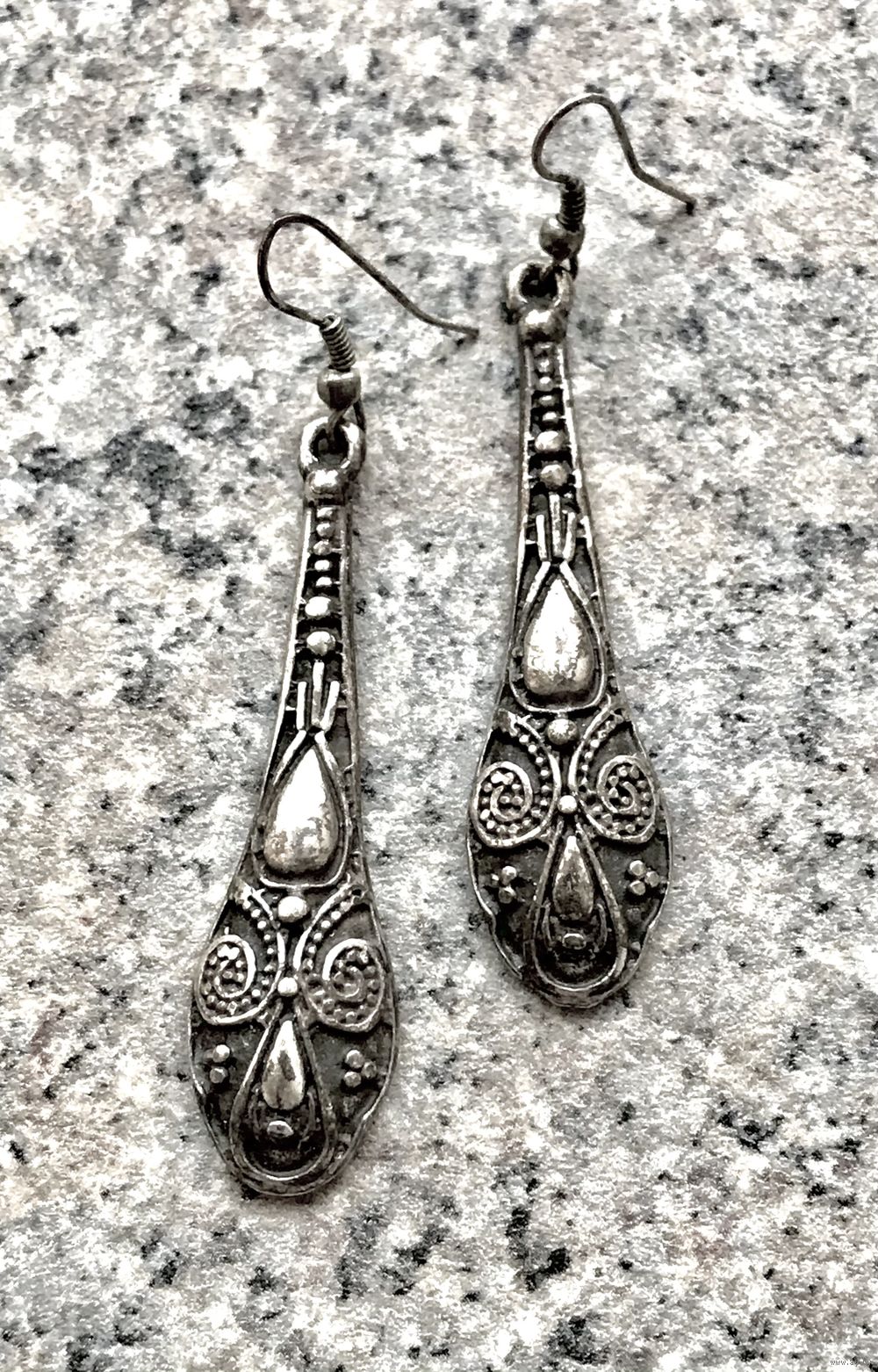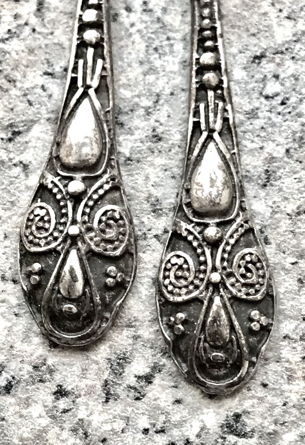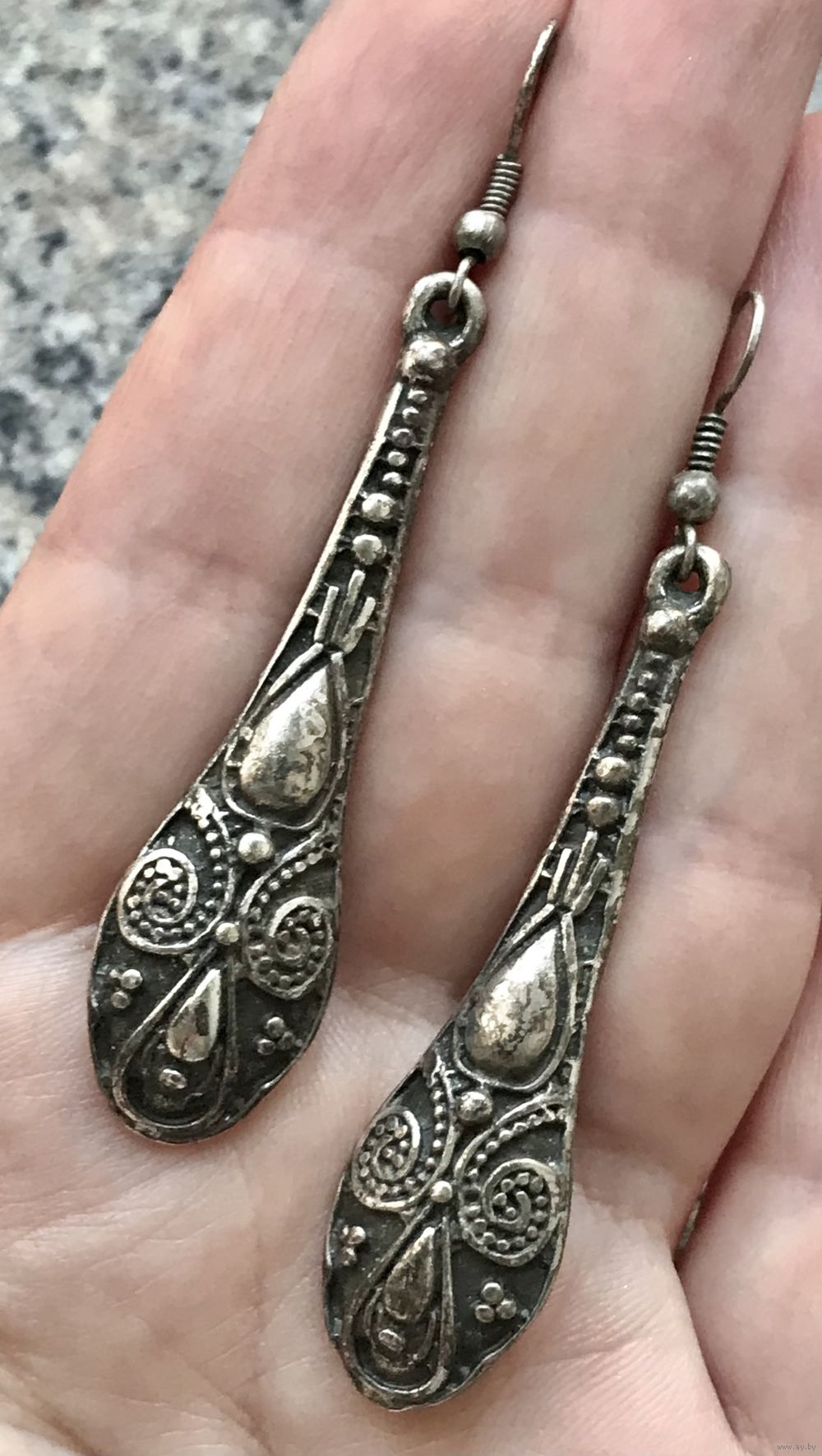Крупные серьги из металла серебристого тона (очень похож на пьютер).Высота со швензой 7см. Состояние хорошее.