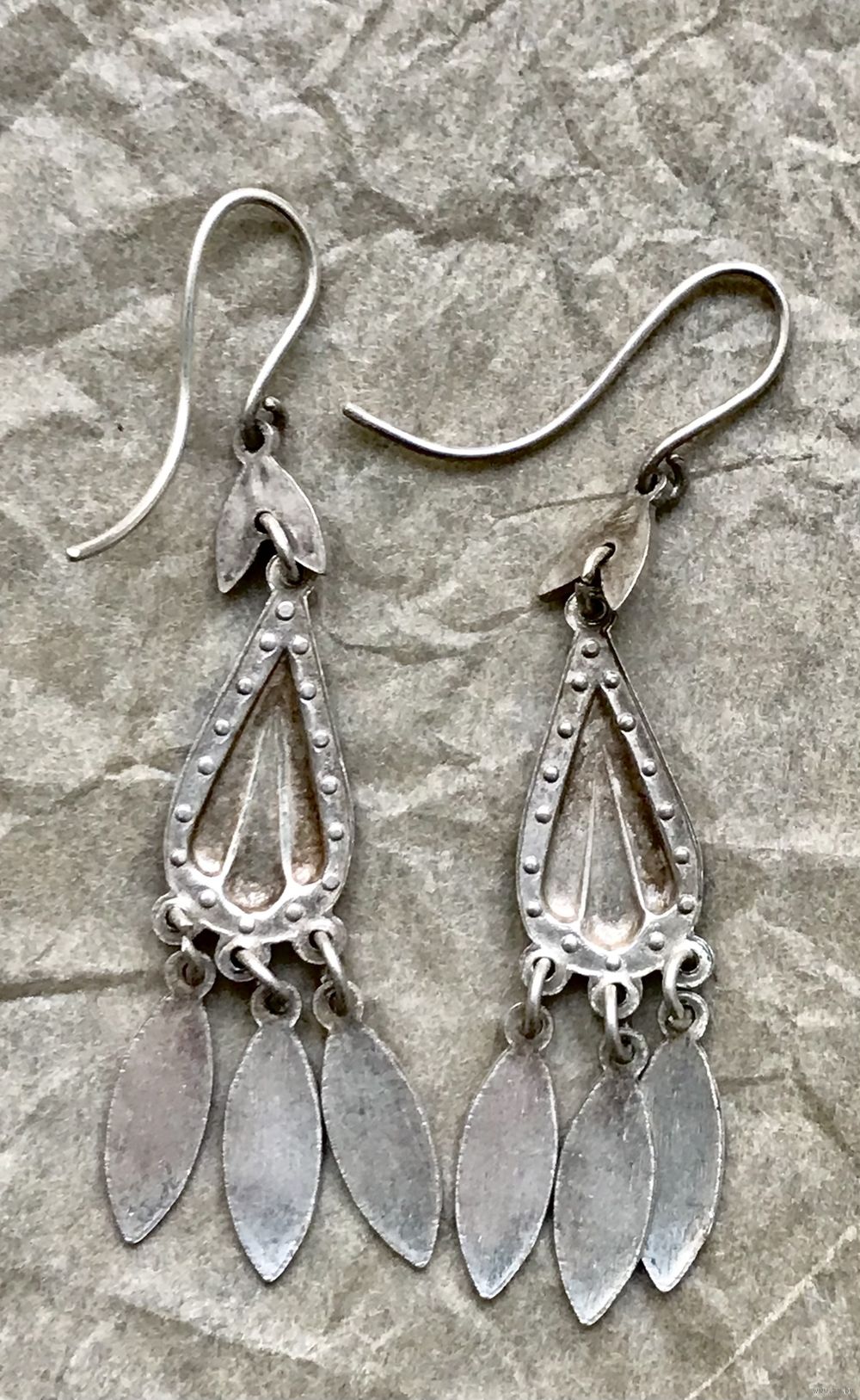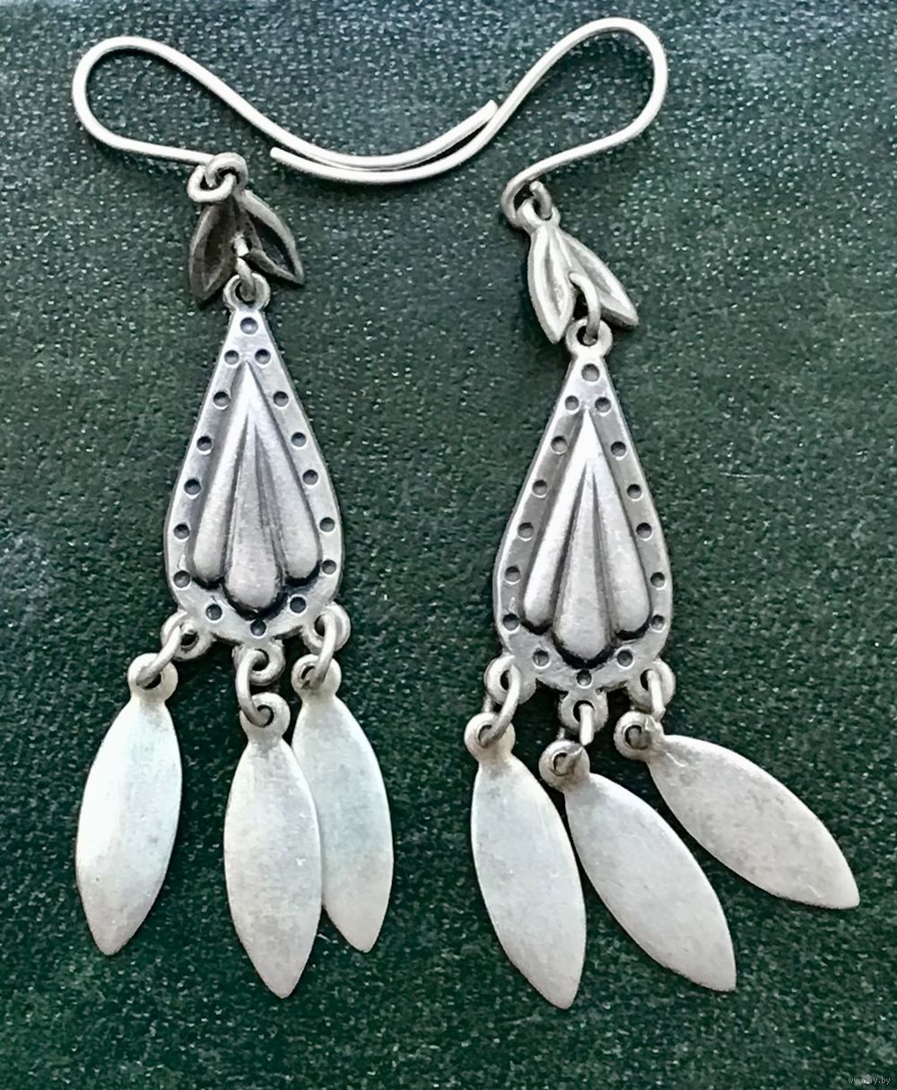 Крупные эффектные винтажные серьги из мельхиора. Высота серьги 6,4см. Состояние хорошее.