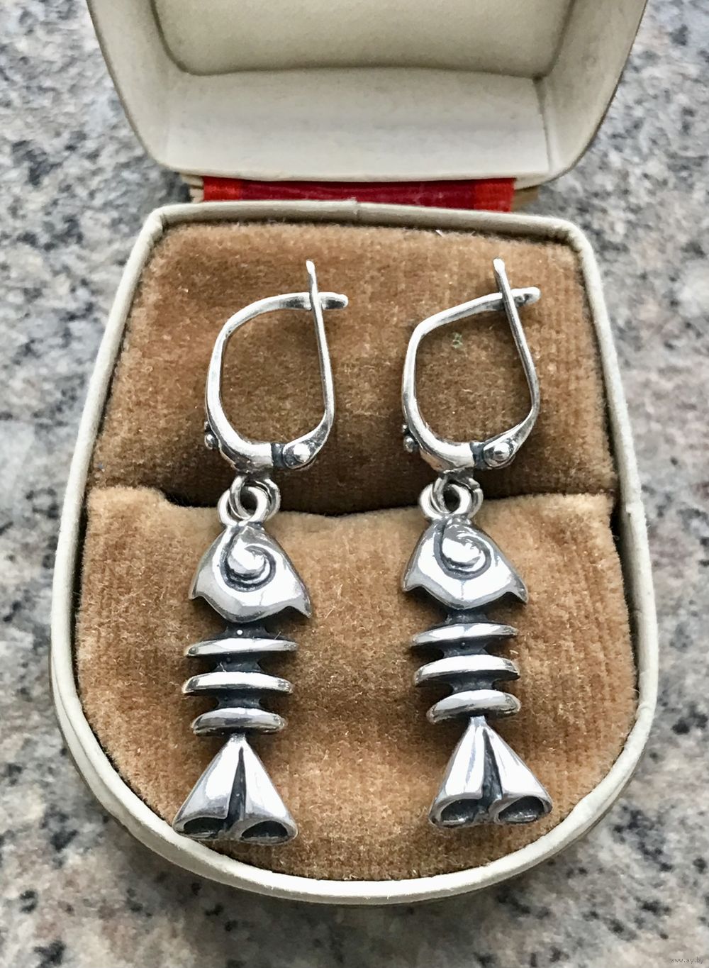 Серьги из металла с глубоким серебрением. Высота 3,5см., состояние хорошее.