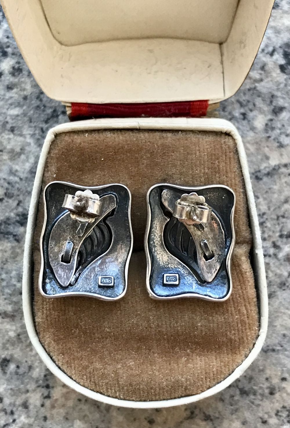 Крупные серьги из серебра 925пр. (на обратной стороне каждой серьги стоит надпись AG и европейское клеймо). Размер серьги 2х1,4см. Вес 6,6гр. Состояние хорошее.
