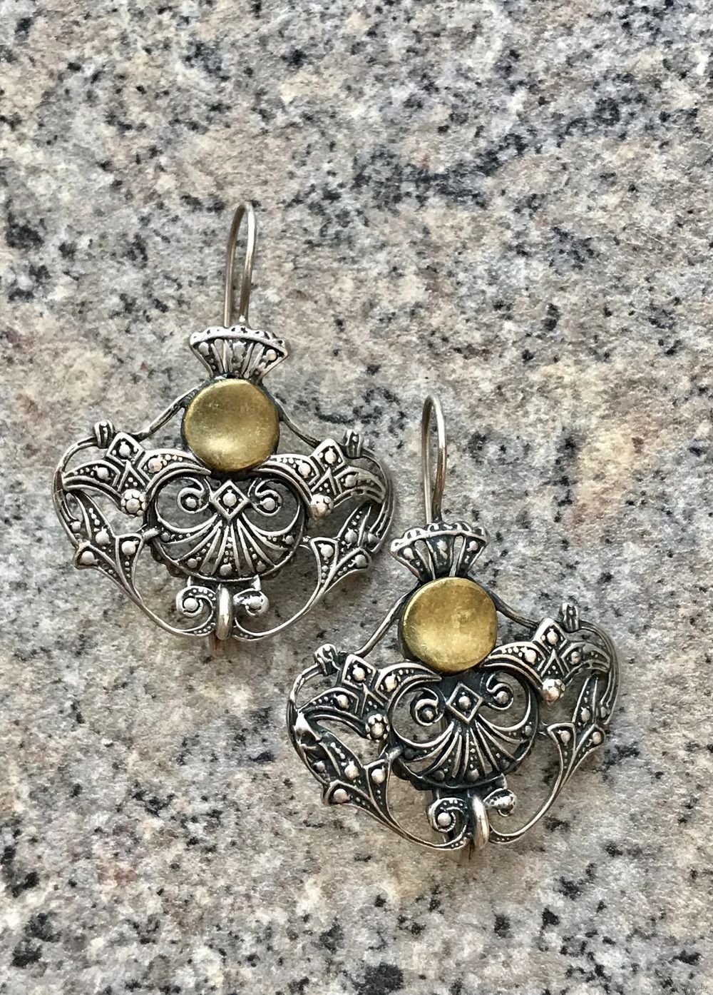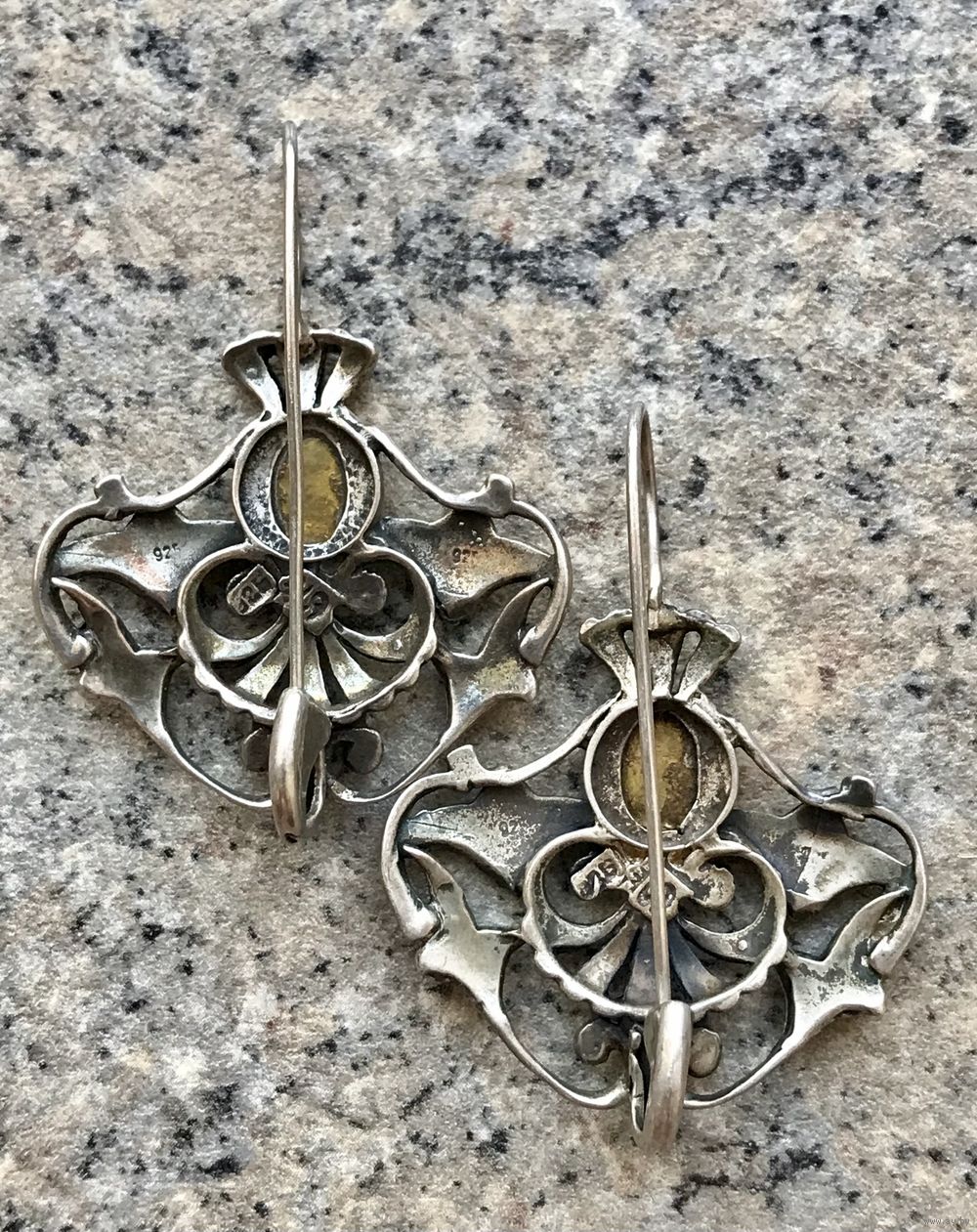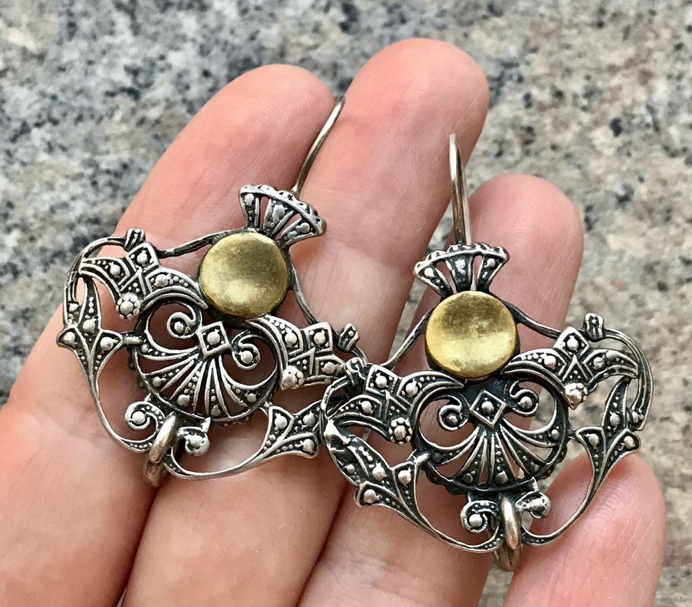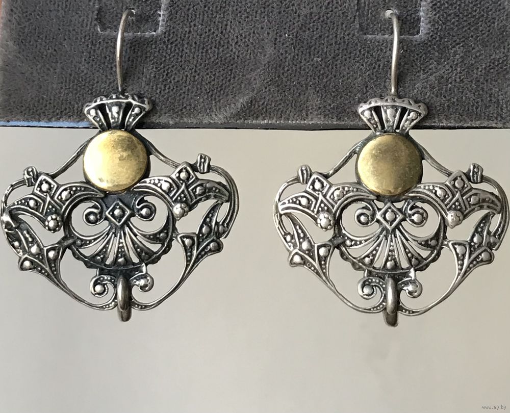 Крупные серьги из серебра 925пр. Высота с петлей 4,5см., размер подвески 3,3х3,3см. Вес 13гр. Состояние хорошее.
