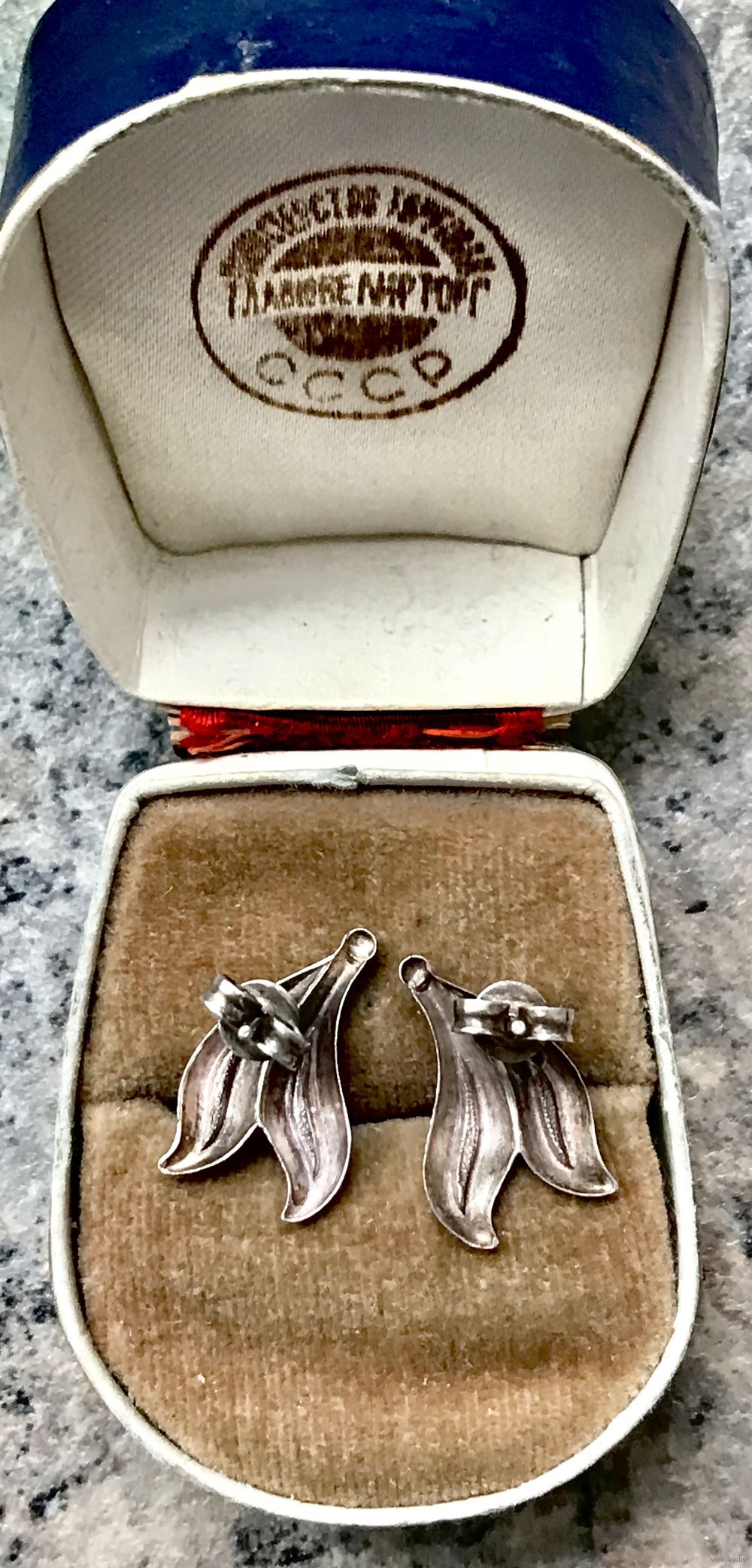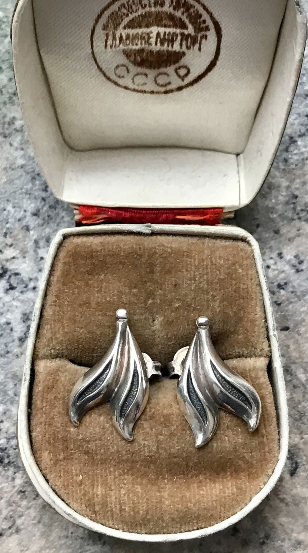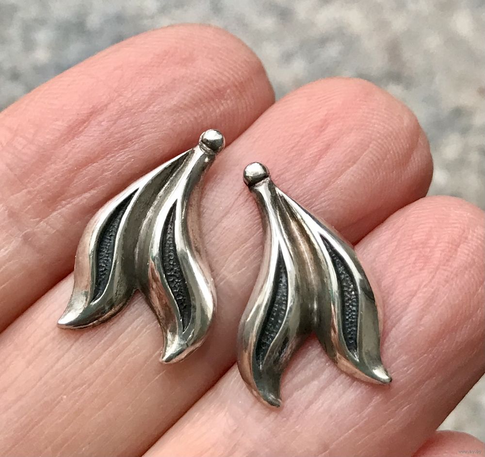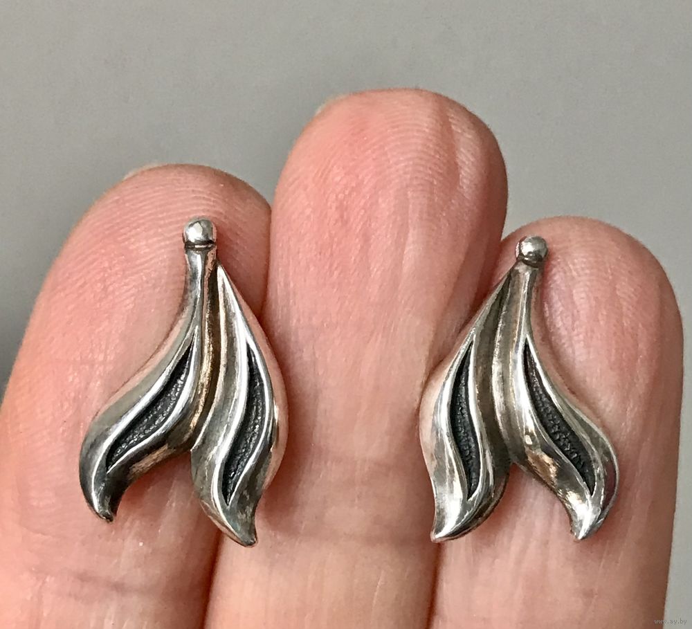 Серьги-пусеты из серебра 925пр.(звезда). Сделаны в 1990г. в Таллине. Высота серьги 2см., вес пары 1,93гр. Состояние хорошее.