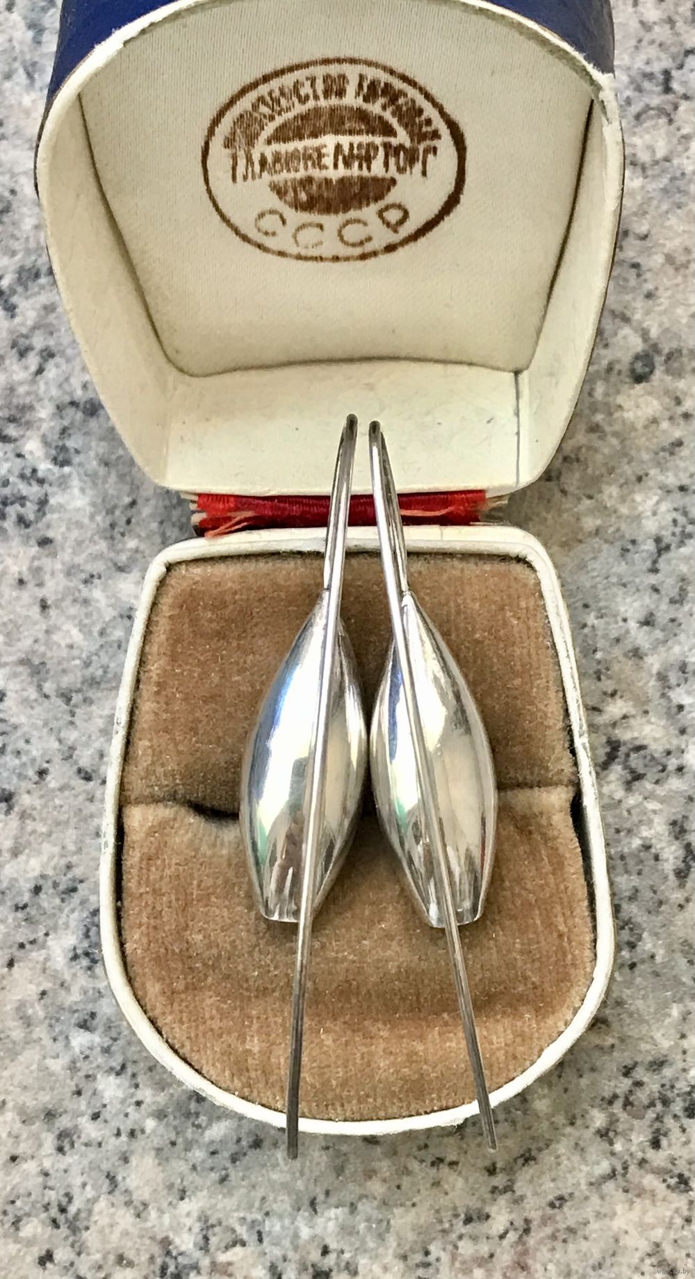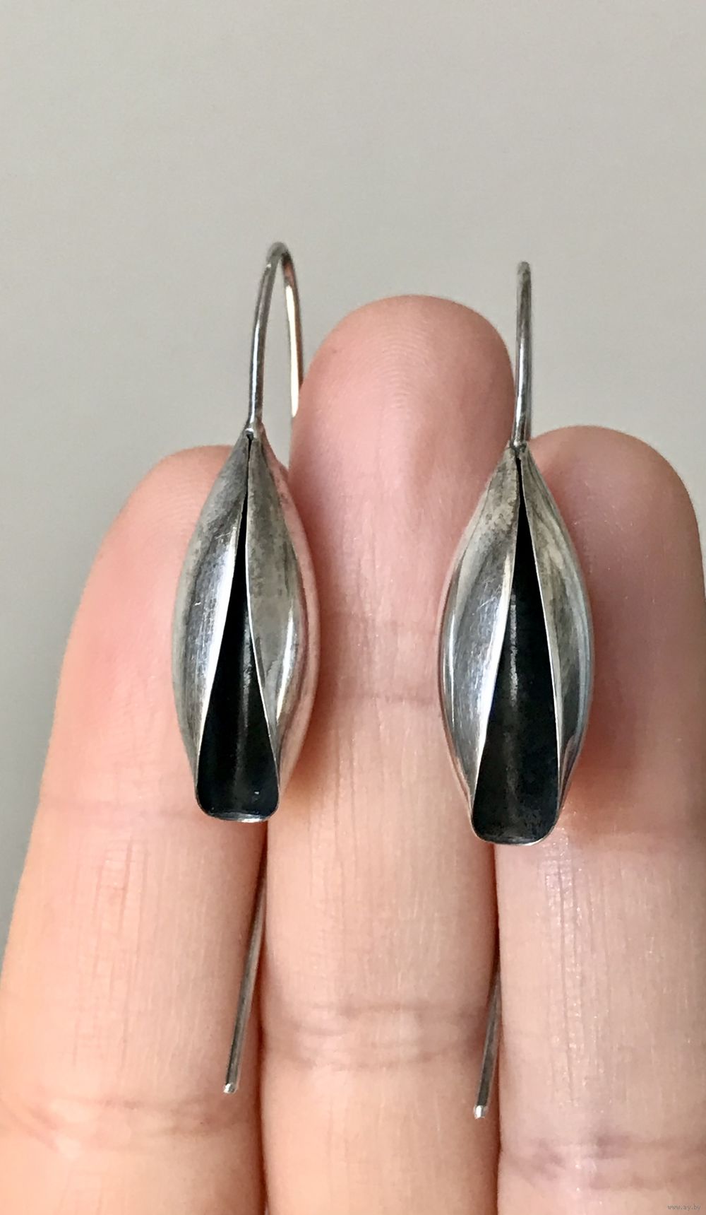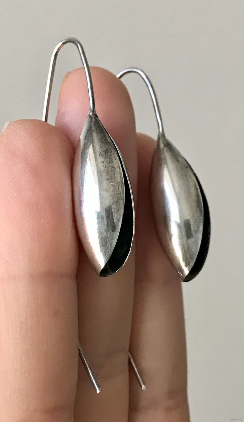 Дизайнерские серьги из латуни с глубоким серебрением. Высота 4см., размер бутона 2,5х1см. Состояние хорошее.