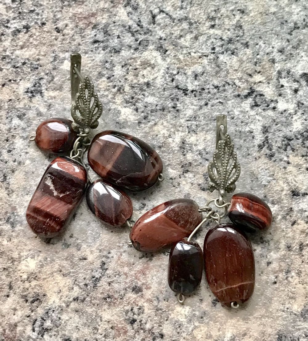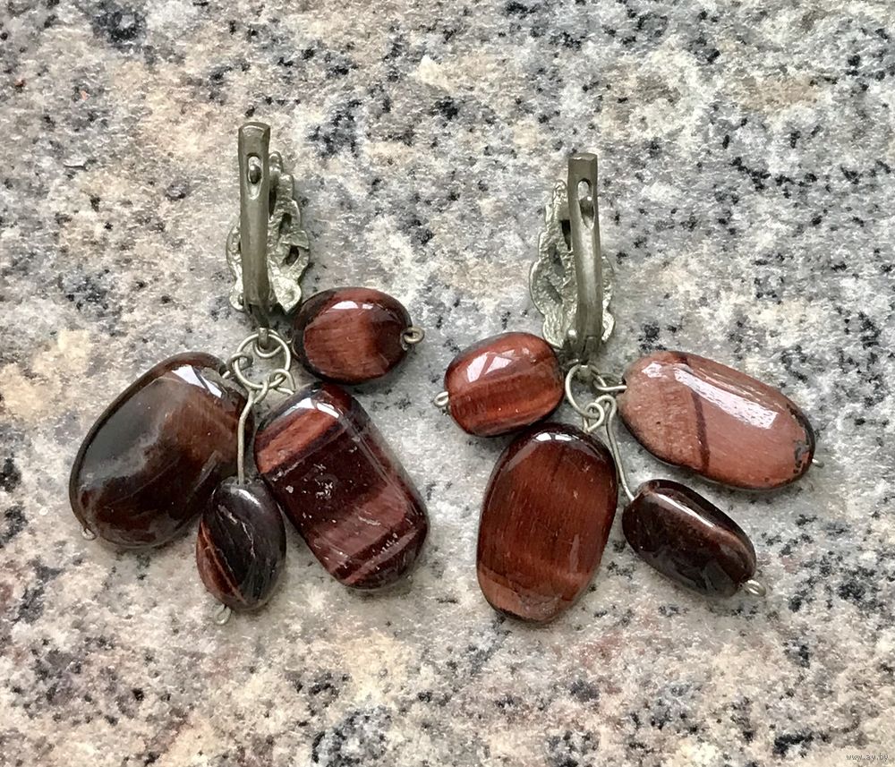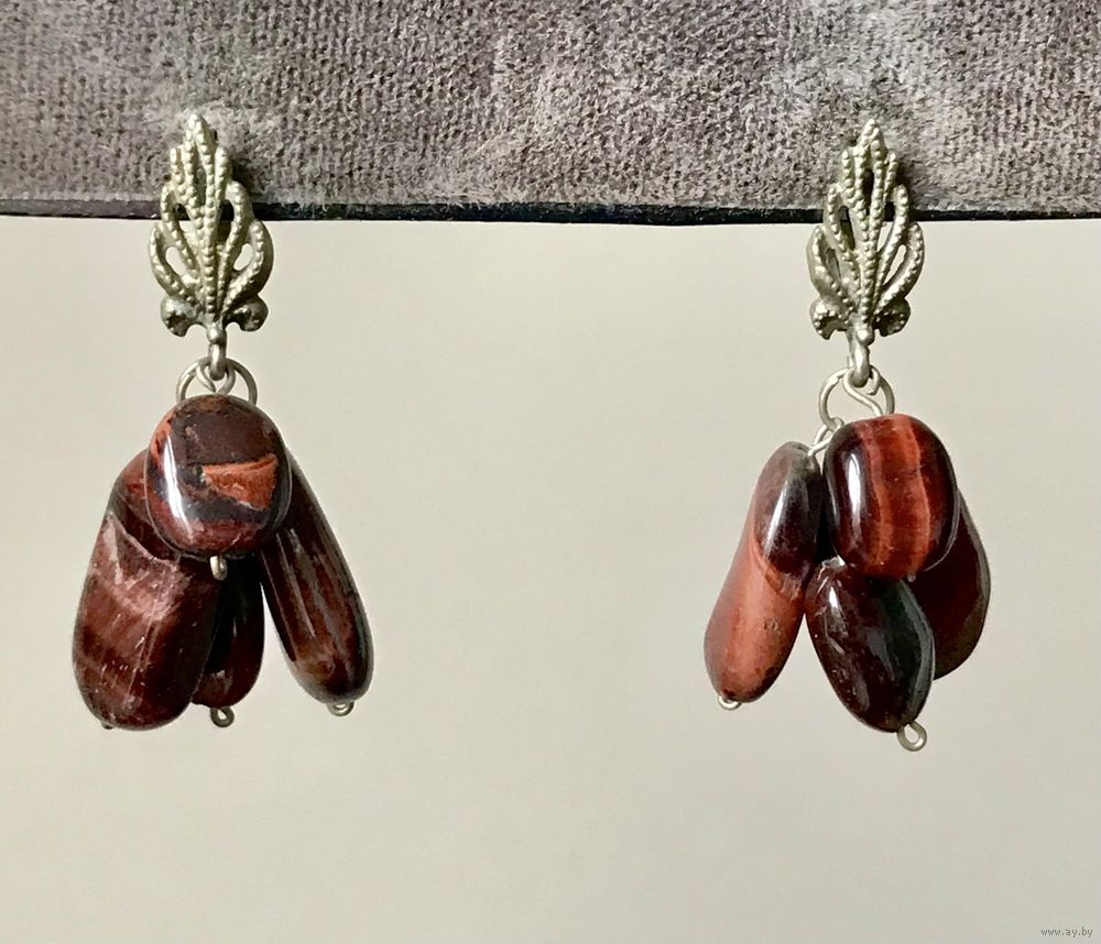 Винтажные серьги с основой из мельхиора и подвесок из камня. Высота серьги 4см. Состояние хорошее.