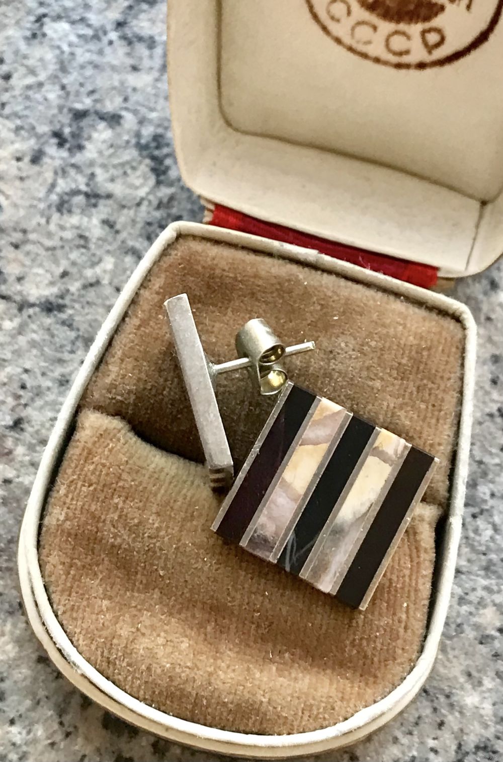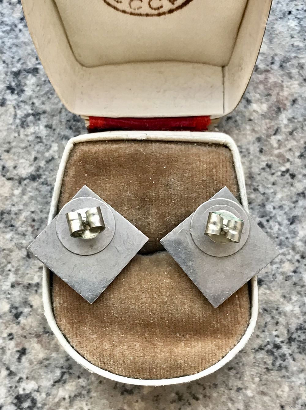 Винтажные серьги пусеты с основой из мельхиора, на лицевой стороне вставки из нат. камня. Размер серьги 1,6х1,6см. Состояние хорошее.