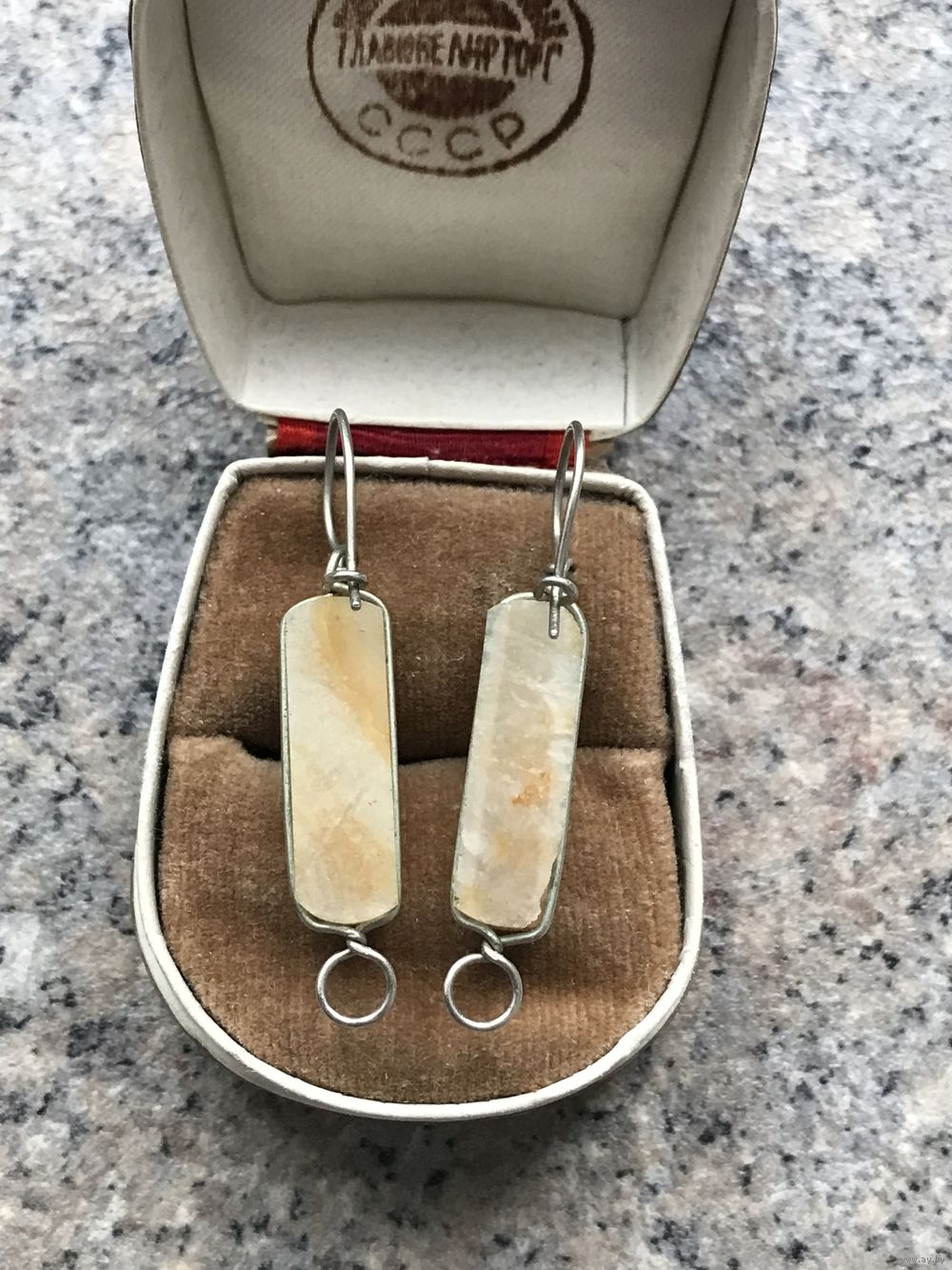 1.Винтажные серьги из мельхиора и вставок из агата. Высота с петлей 4,3см. Состояние хорошее.