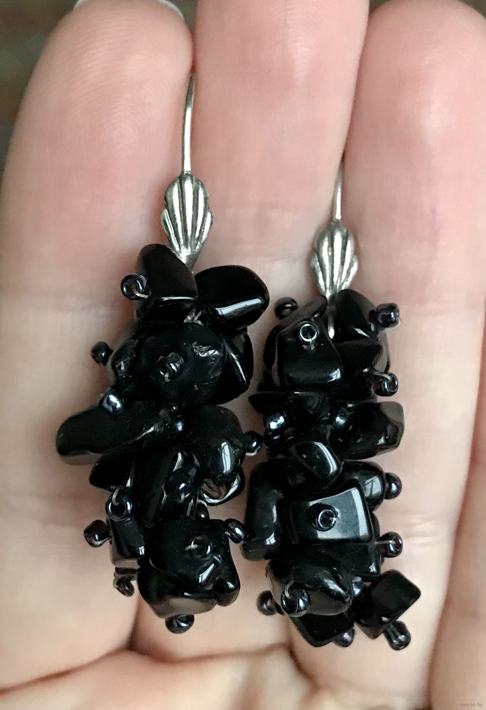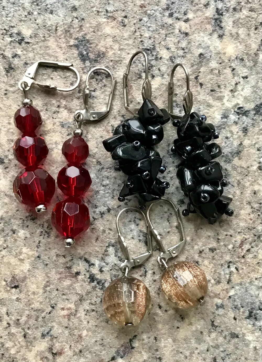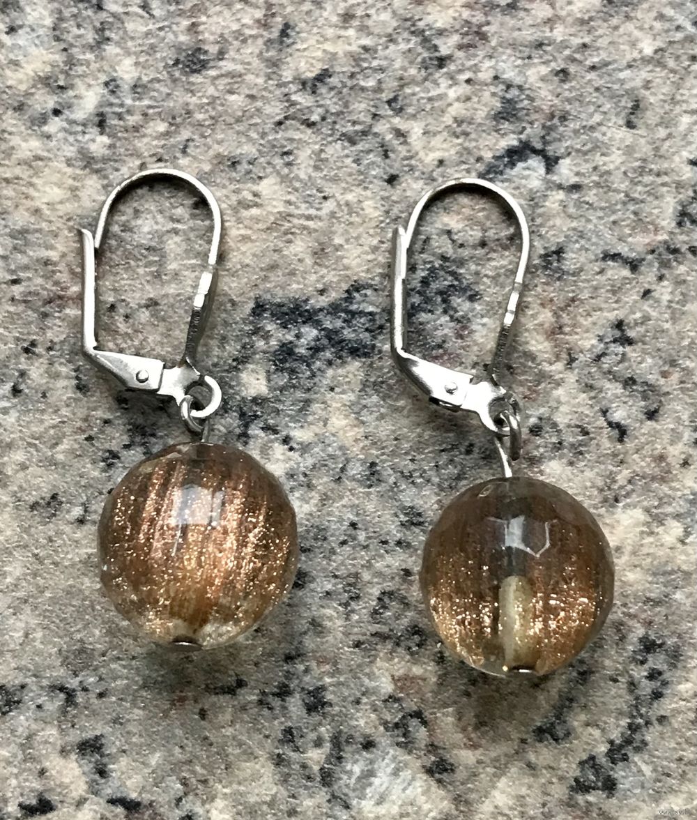 Серьги с подвесками из стекла. Состояние хорошее.
