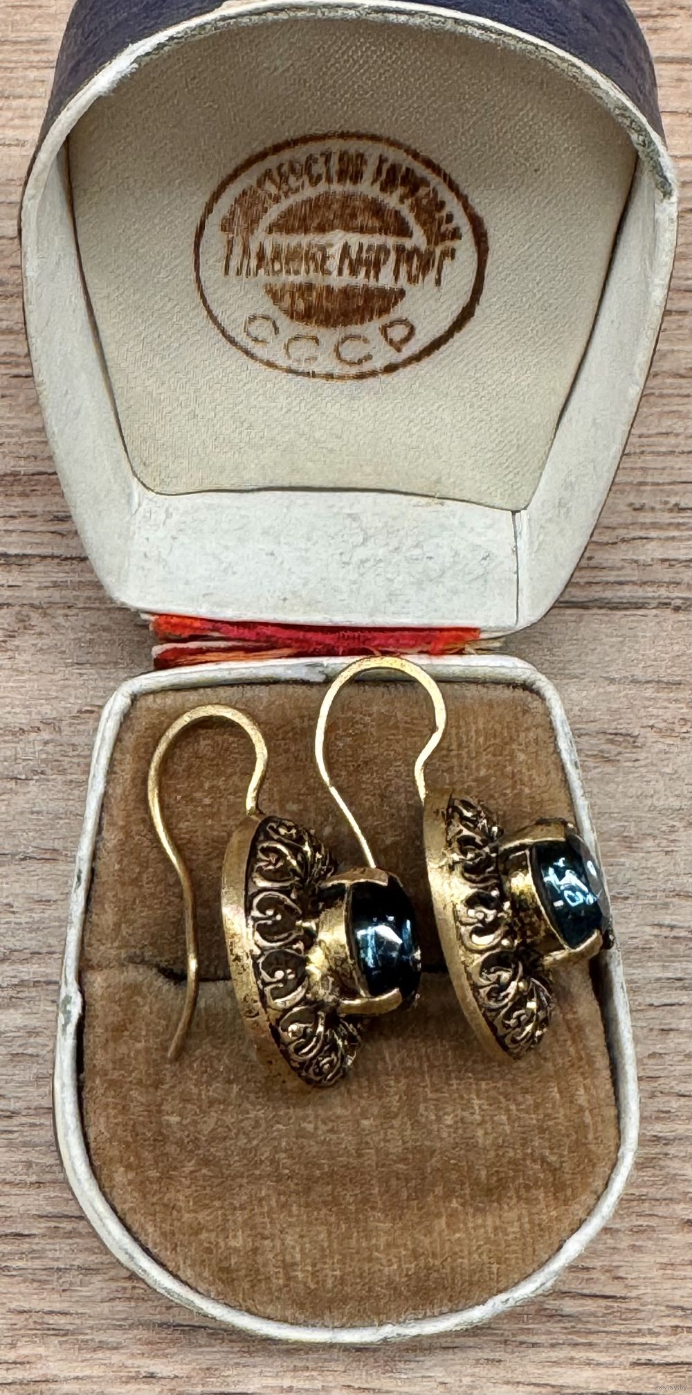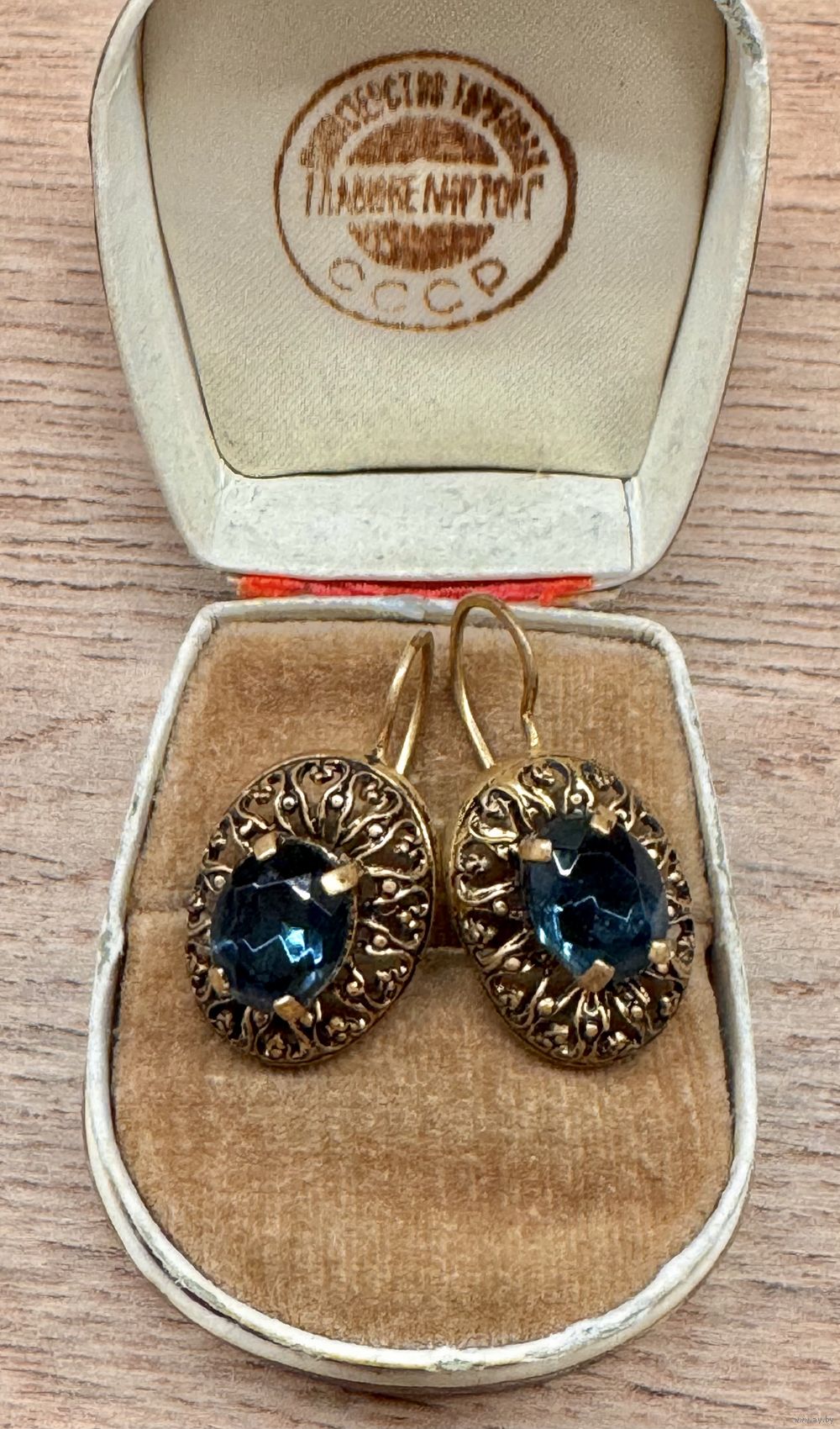 Винтажные чешские серьги из латуни и вставок из стекла. Высота серьги 2,8см. Состояние хорошее.