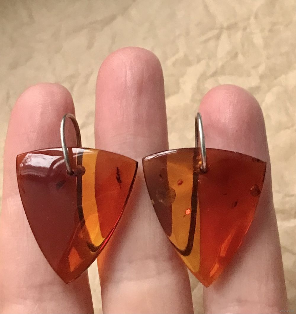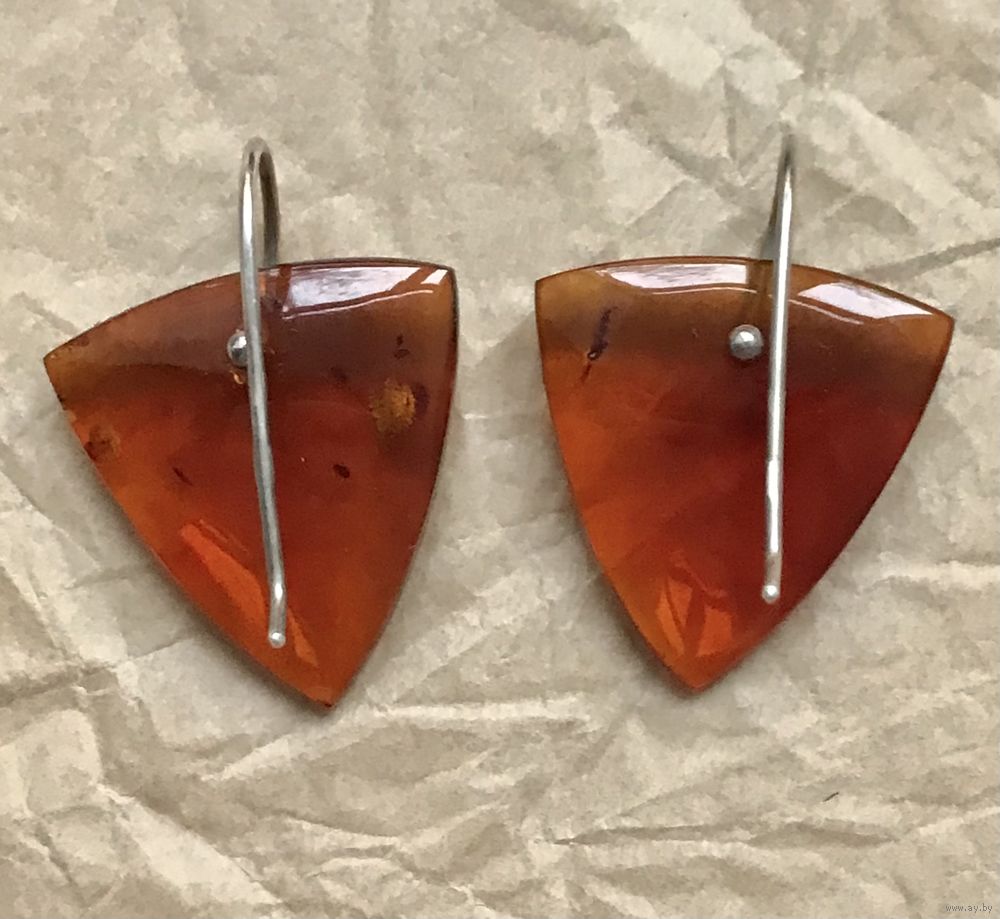 Серьги Калининградского янтарного комбината. Серебро 925пр.(звезда) и янтарь. Высота серьги 3,5см., размер янтарной подвески 2,5х2,7х2,7см. Состояние хорошее.