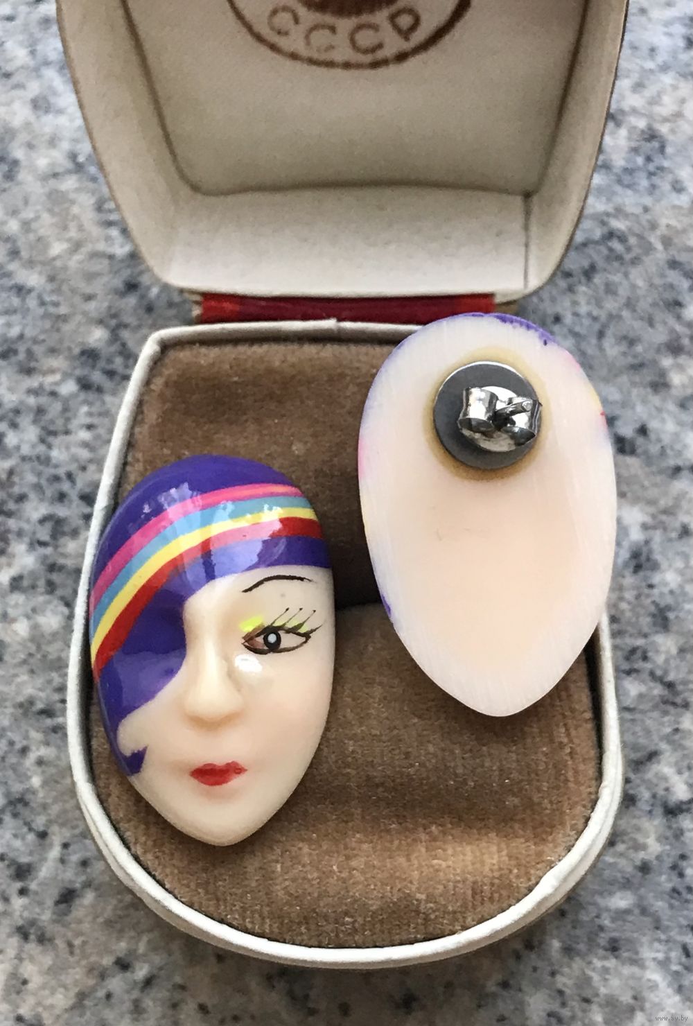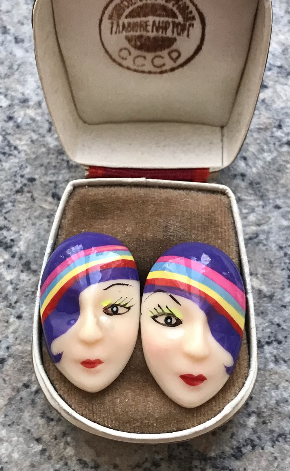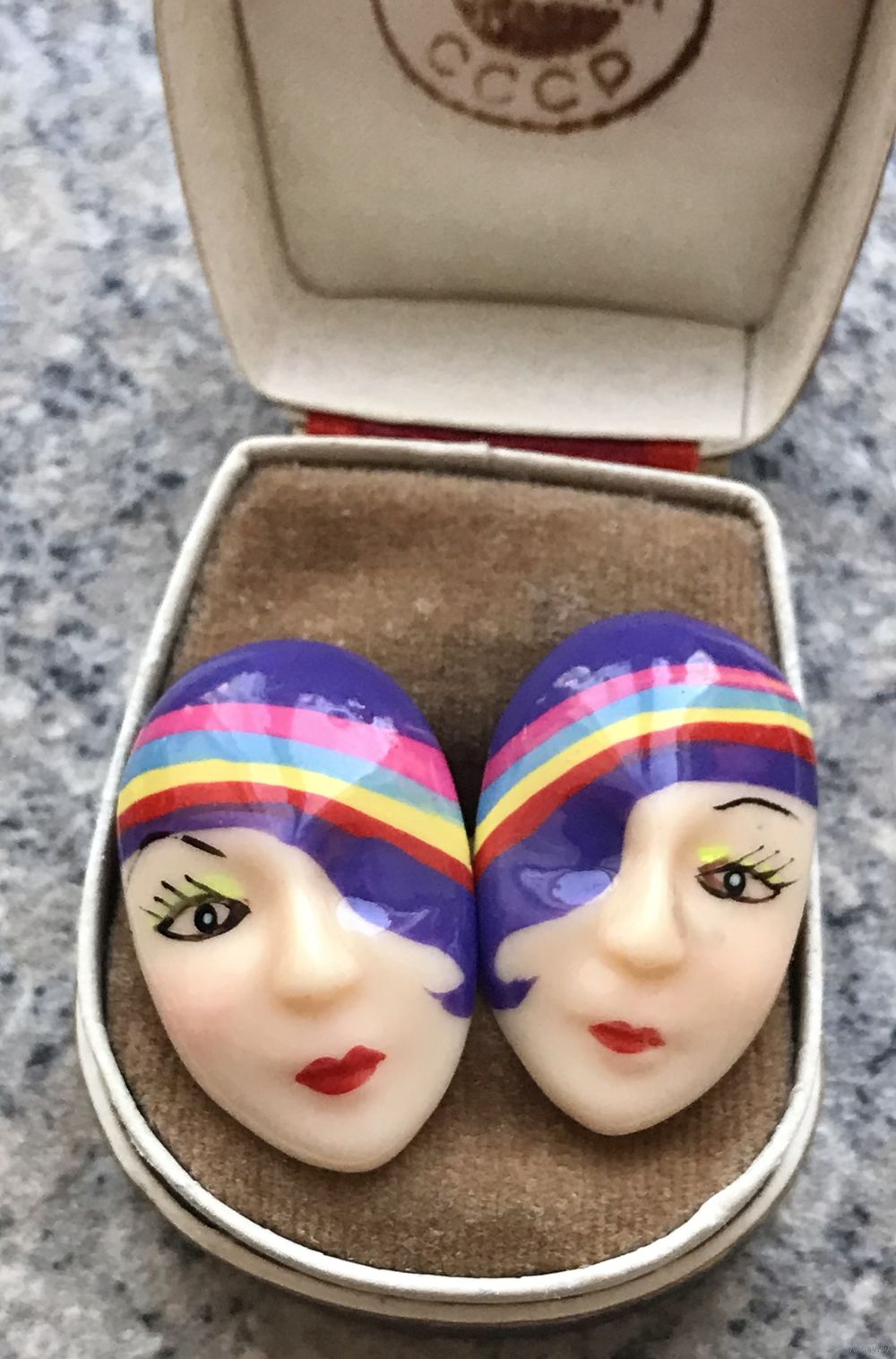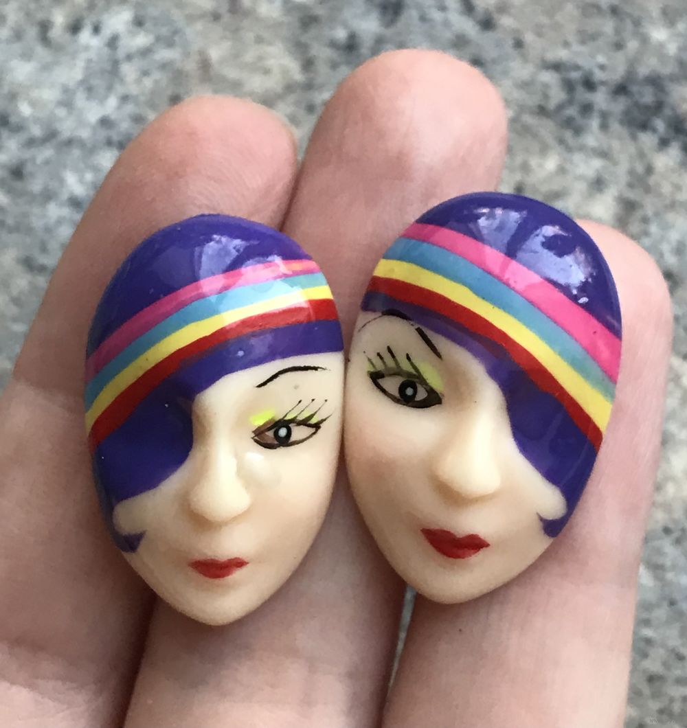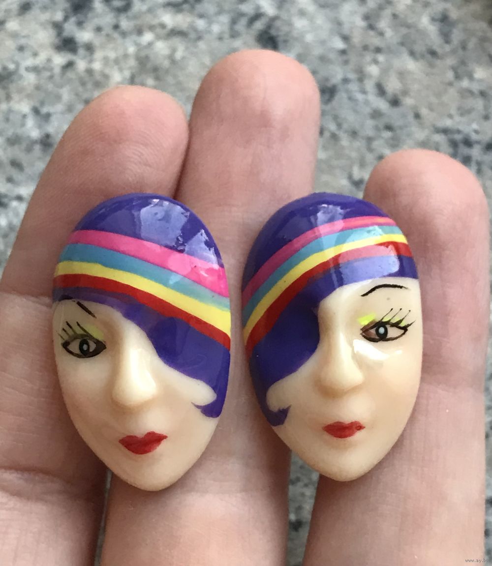 Винтажные серьги пусеты из пластика, ручная роспись. Размер 3х1,8см. Состояние хорошее.