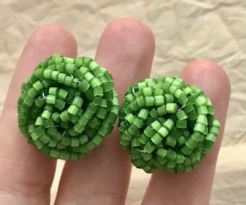 Крупные винтажные наборные серьги из сатинового бисера, основа сделана из латуни (на обратной стороне и на крючках имеются следы окисления металла, этот момент учтён в цене). Диаметр серьги 2,4см.