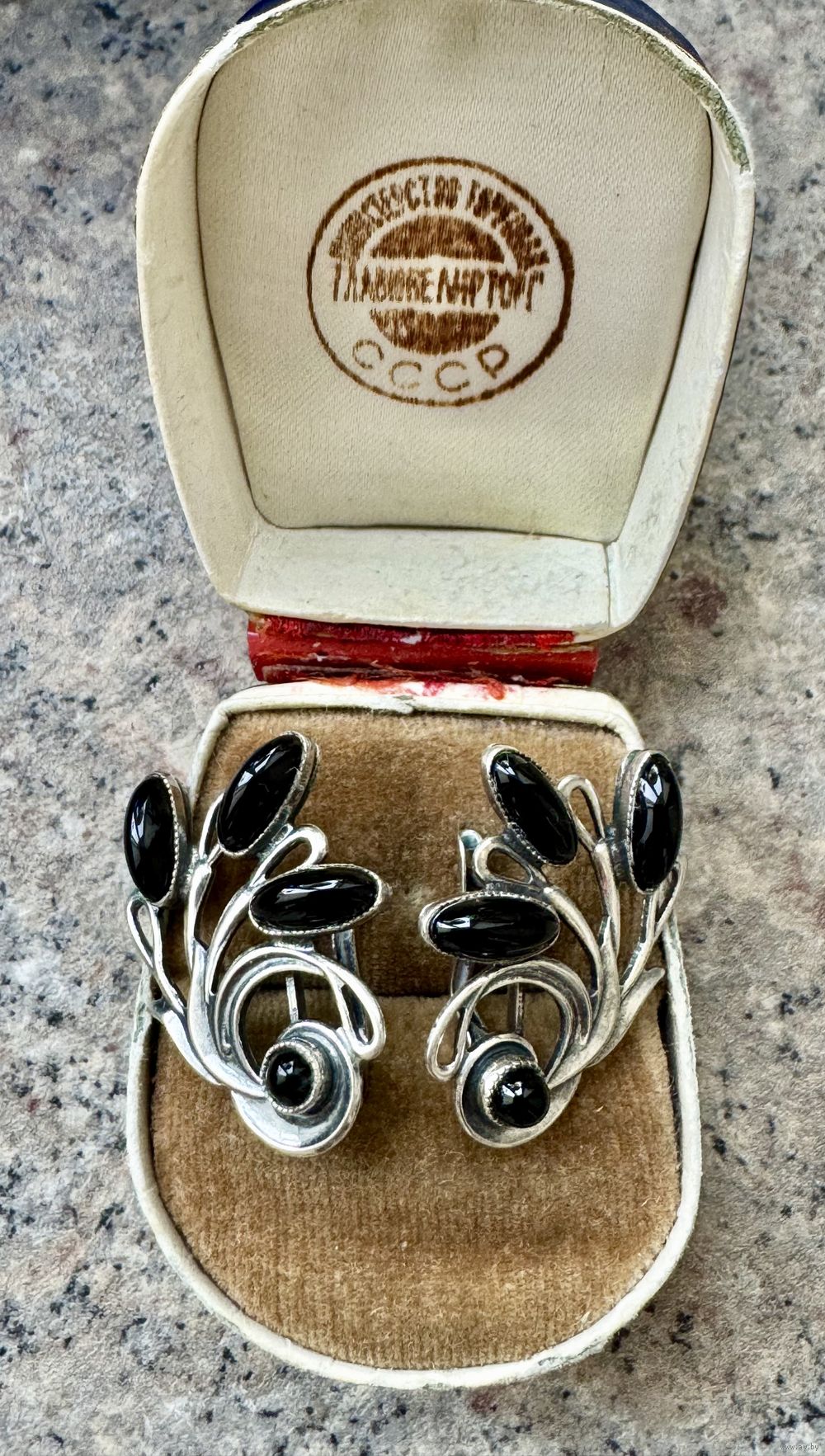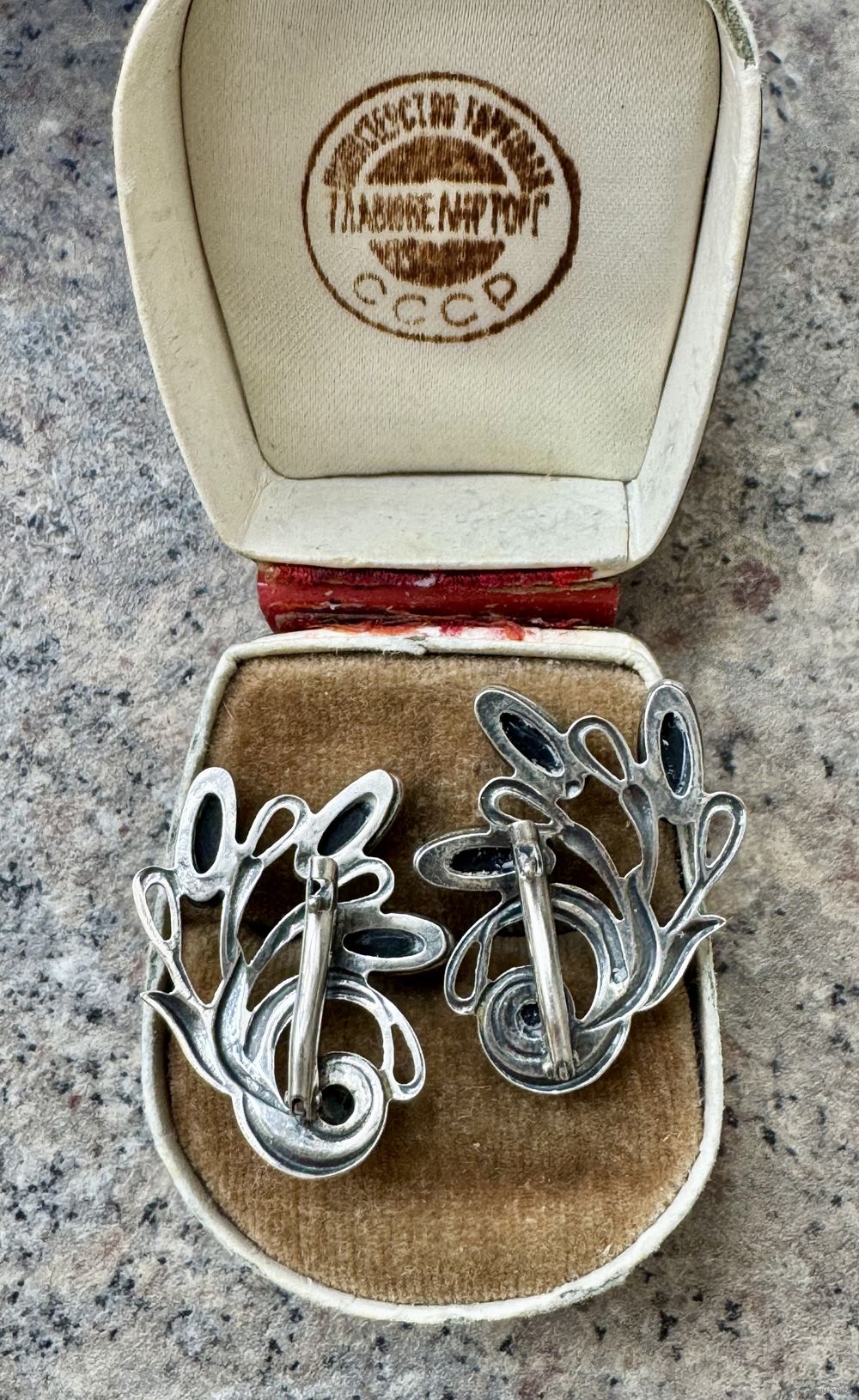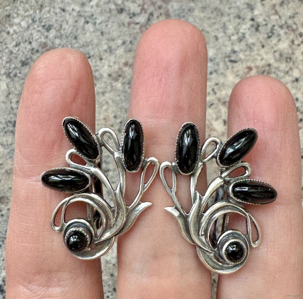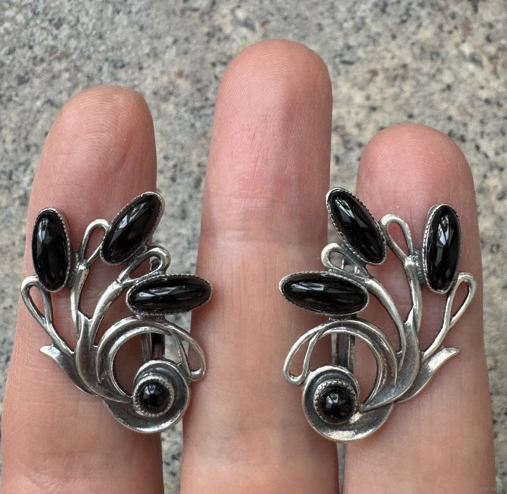 Крупные винтажные серьги из мельхиора и вставок из художественного стекла. Размер серьги 3х2см. Состояние хорошее.