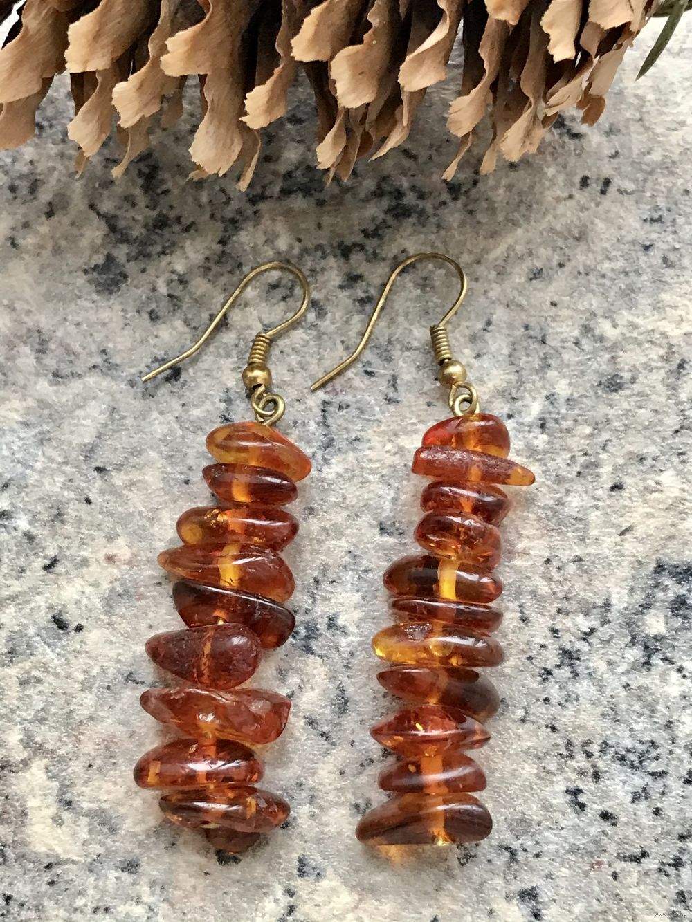 Винтажные серьги с подвесками из янтаря, швензы из латуни. Высота серьги 6см., состояние хорошее.